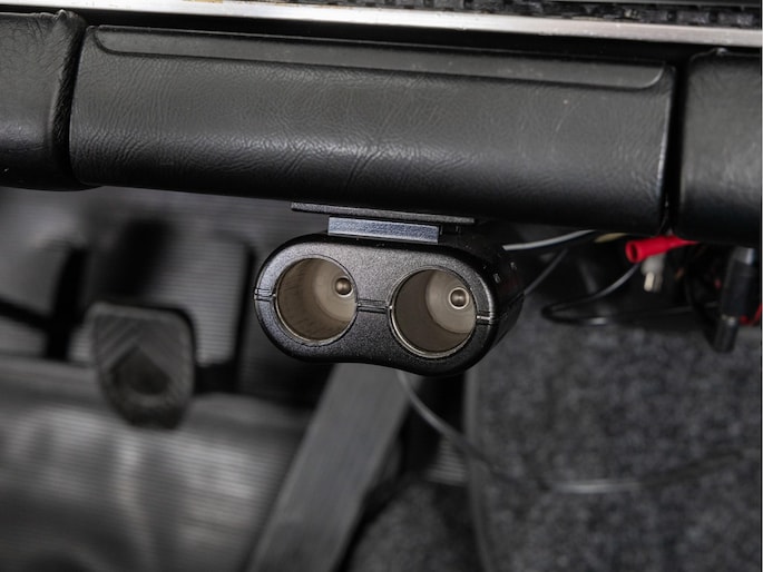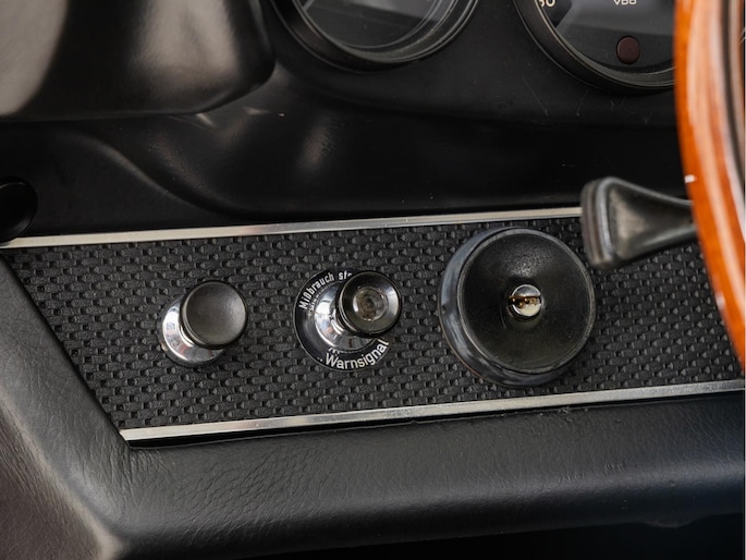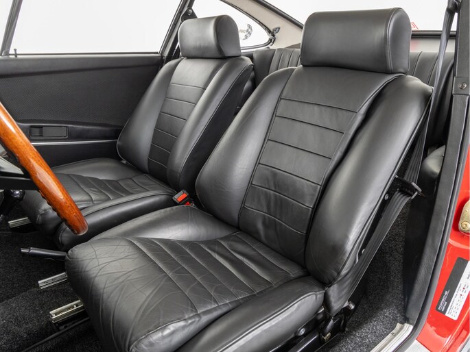 The interior was subsequently fitted with Recaro sports seats, a wooden steering wheel and light rally equipment in the form of a trip meter. This has been fitted so that it can be easily dismantled. No holes have been drilled. Also, the original steering wheel is also present.
