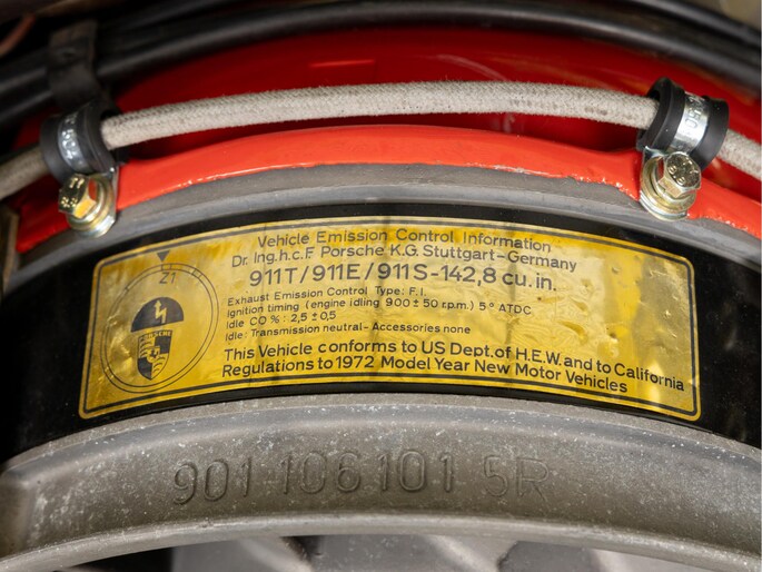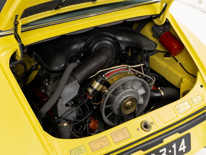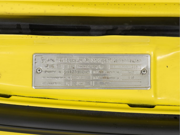 Gepresenteerd in zijn originele kleur Hellgelb met een zwart interieur welke extra is uitgerust met originele Recaro sport-stoelen, Verdere opties zijn, onder andere, een sperr-differentieel, 3-punts gordels en getint glas. Het betreft tevens een zeer vroege productie van modeljaar 1972, chassisnummer 18 !!. Geproduceerd in Augustus 1971. Een mooi detail hiervan is de voorbumper van Fiberglas. Welke naar verluid enkel zijn geplaatst op de eerste 20 auto's. Het betrof destijds de nieuw vormgegeven bumper met geïntegreerde spoilerlip, exclusief voor de S-modellen. Deze extreem zeldzame voorbumper is nog altijd aanwezig. Verder zijn de motor en versnellingsbak matching numbers en verkeerd de Porsche zowel optisch als technisch in een zeer goede staat. De carrosserie is zelfs volledig origineel en ongerestaureerd. Enkel is de 911 een keer volledig opnieuw gespoten. De motor- en kofferbakruimte voorin zijn daarbij on aangetast gebleven. Het spuitwerk is professioneel uitgevoerd.