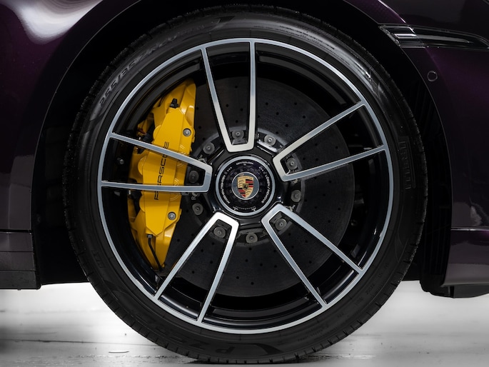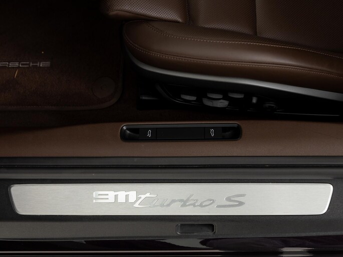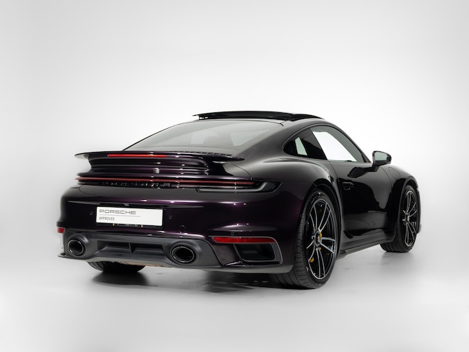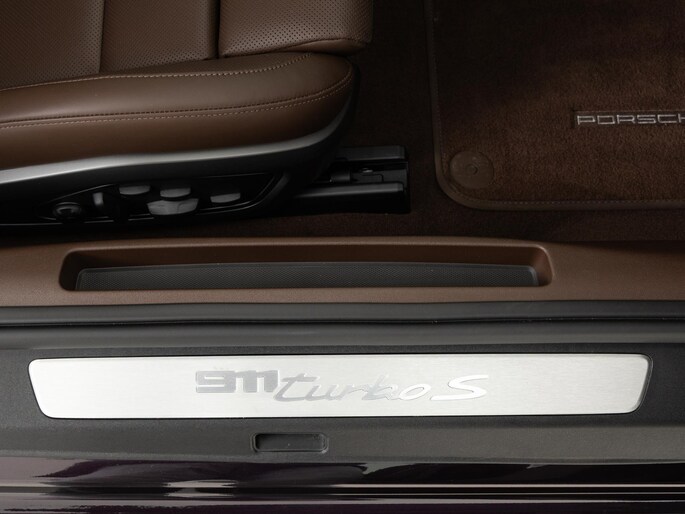 Deze Porsche 911 Turbo S in de kleur naar keuze: Amethyst metallic heeft slechts 7.162 kilometers gereden. De Porsche onderscheidt zich onder andere door unieke opties, zoals; Burmester High-End Surround Sound-System, Interieurpakket leder, Lamellen motordeksel in hoogglans zwart gespoten en het Liftsysteem vooras. Uiteraard is dit exemplaar nog verder te verfraaien door hoogwaardige accessoires van Porsche Tequipement. Verder heeft deze 911 beschermfolie op de voorzijde.
