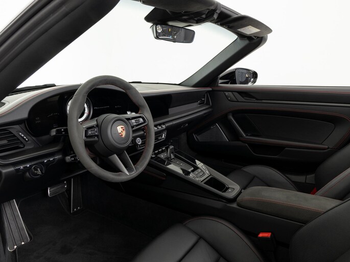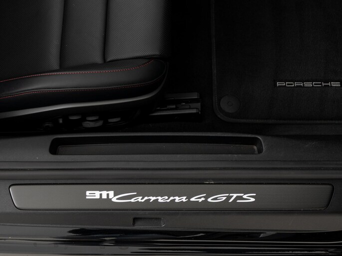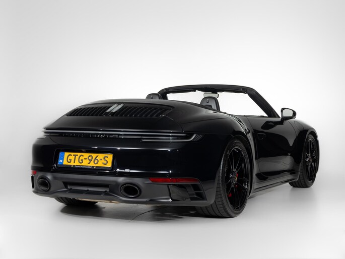 Deze Porsche 911 Carrera 4 GTS Cabriolet in de kleur Diepzwart metallic heeft slechts 15.290 kilometers gereden. De Porsche onderscheidt zich onder andere door unieke opties, zoals; Burmester High-End Surround Sound-System, Exterieurpakket gespoten in zwart (hoogglans), Interieurpakket met decoratieve stiksels in afwijkende kleur en Verwarmd GT Sportstuur Race-Tex met stuurwielpaneel Carbon matt. Uiteraard is dit exemplaar nog verder te verfraaien door hoogwaardige accessoires van Porsche Tequipement.