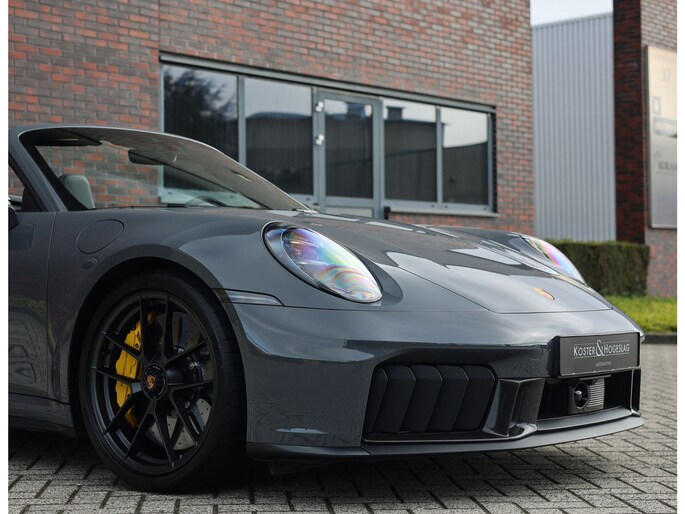 De Porsche 911 Cabrio GTS is altijd een bijzondere verschijning. Maar in deze uitvoering, gespoten in de verfijnde kleur Neo Slate Grey, wordt hij pas echt uitzonderlijk. De combinatie van elegantie en spierkracht is direct zichtbaar.