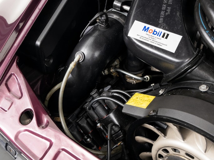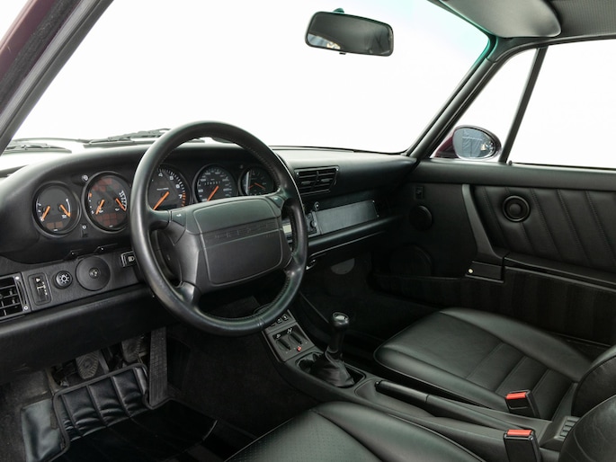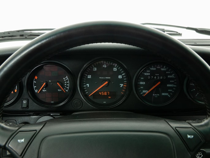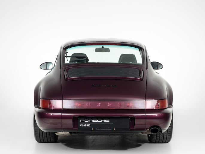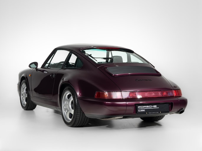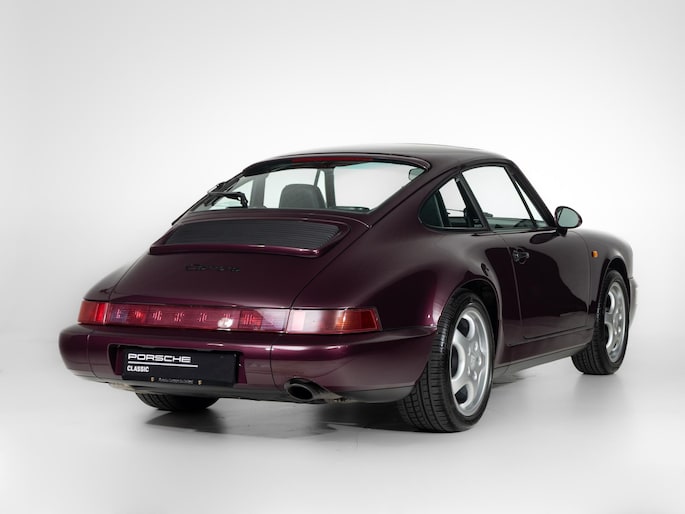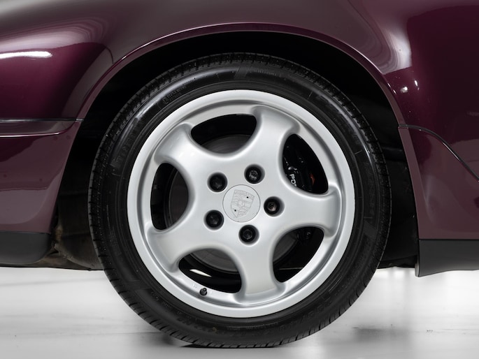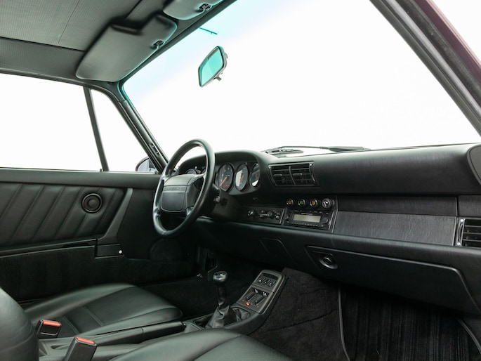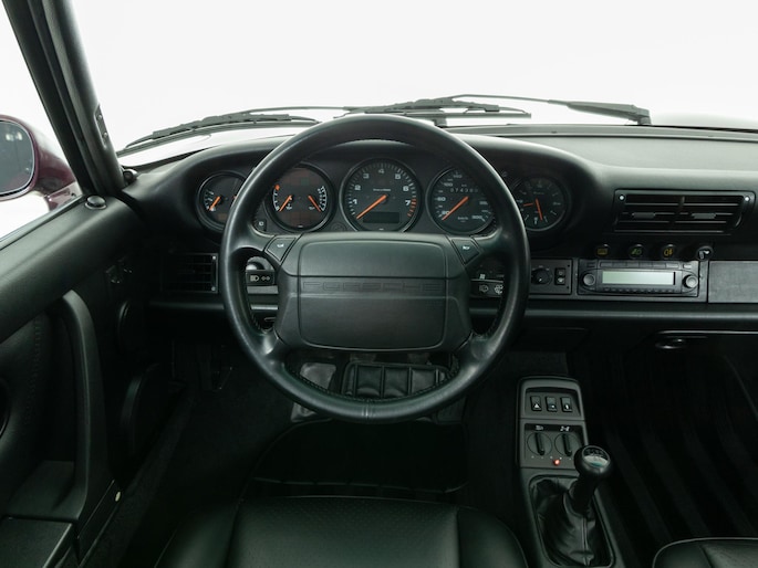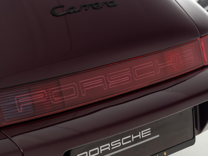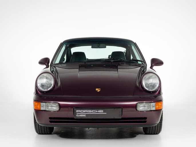 Deze 964 is in April 1992 uitgeleverd aan zijn eerste eigenaar door Porsche Zentrum Wuppertal. Prachtig uitgevoerd in het zeer zeldzame Amethist metallic met een zwart lederen interieur. Voorzien van gewilde opties zoals onder andere een schuifdak, airconditioning en de 17"cup-velgen.