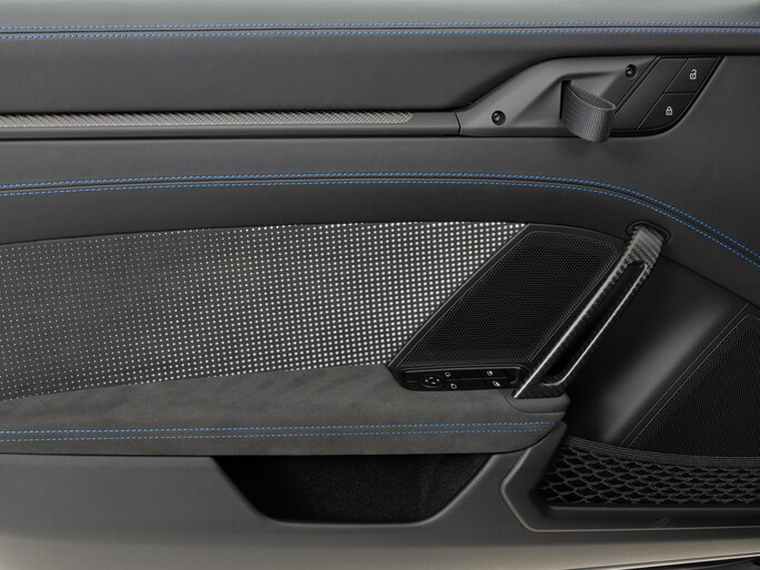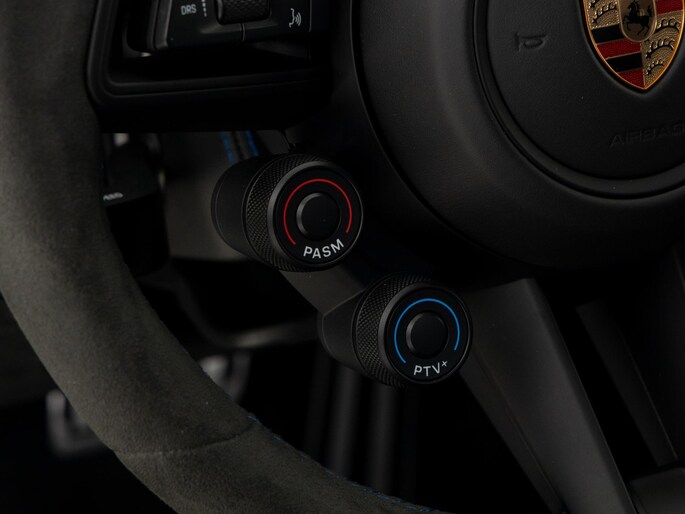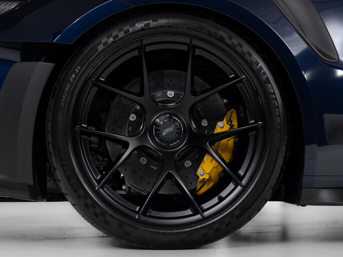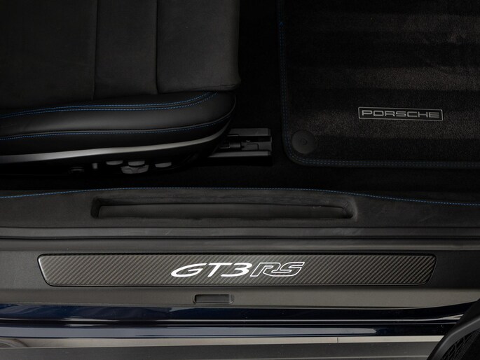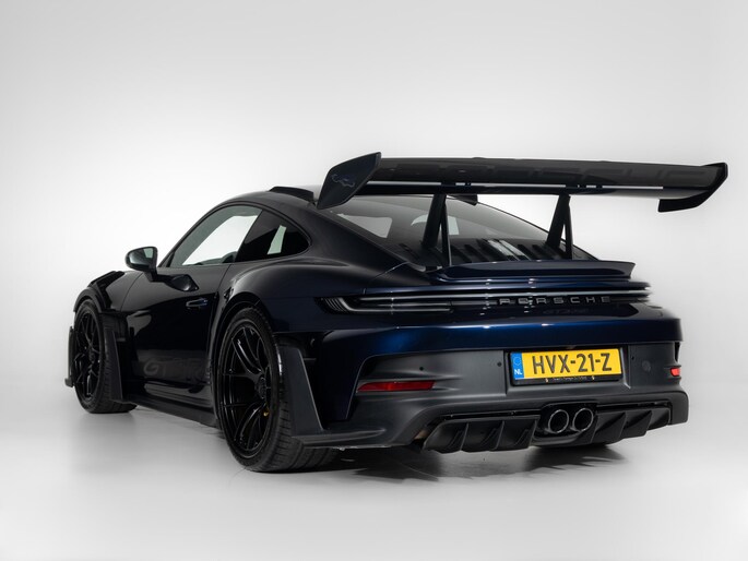 Deze Porsche 911 GT3 RS in de kleur naar keuze Midnight Blue Metallic heeft slechts 844 kilometers gereden. De Porsche onderscheidt zich onder andere door unieke opties, zoals; Adaptieve sportstoelen Plus (elektrisch 18-voudig), Interieurpakket met stiksels in afwijkende kleur, Lederen luchtroosters en lederen lamellen met decoratief stiksel, Porsche Ceramic Composite Brake (PCCB) en het Weissach pakket zonder rolkooi. Uiteraard is dit exemplaar nog verder te verfraaien door hoogwaardige accessoires van Porsche Tequipement.