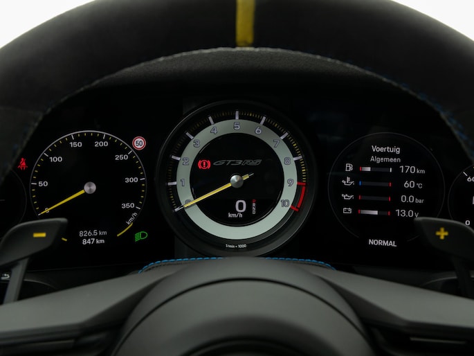 Binnenin zorgt de Porsche Track Precision App voor realtime data-analyse, ideaal voor circuitgebruik. Porsche Ceramic Composite Brake (PCCB) remmen bieden extreme remprestaties, waardoor de 992 GT3 RS niet alleen snel, maar ook uiterst controleerbaar is.