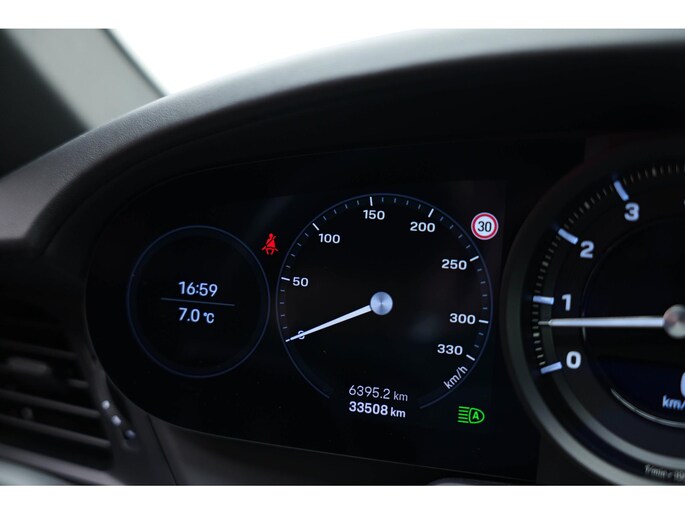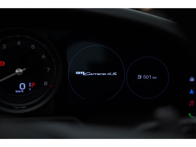 De Porsche 911 Cabrio is ook voorzien van ADAS. Deze Advanced Driver Assistence Systems fungeren als extra ogen en oren: ze houden voor u de weg in de gaten en grijpen in wanneer dat nodig is. Dat de auto steeds meer taken van de bestuurder overneemt, merkt u bijvoorbeeld aan het systeem voor verkeersbord-detectie in deze auto. Het Lane-keeping systeem garandeert dat u zich niet onverhoeds buiten de lijnen van de rijstrook begeeft.