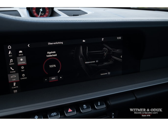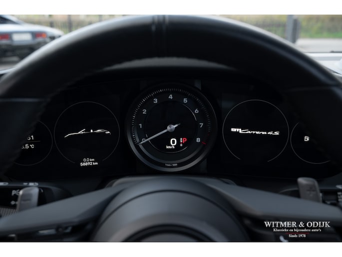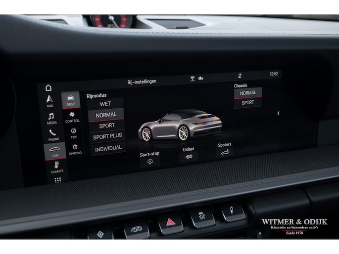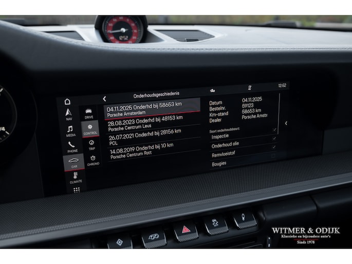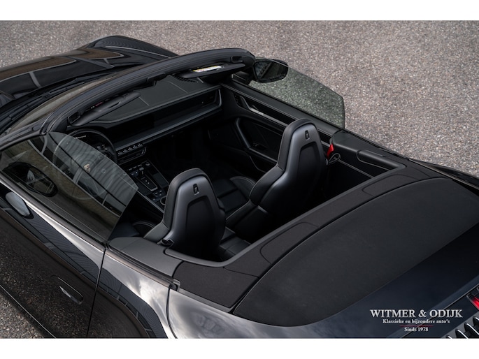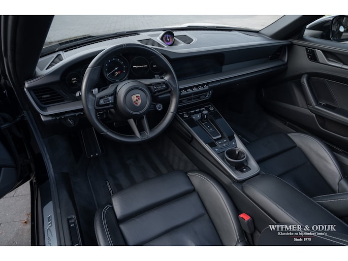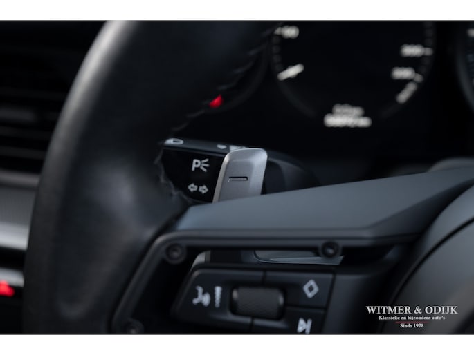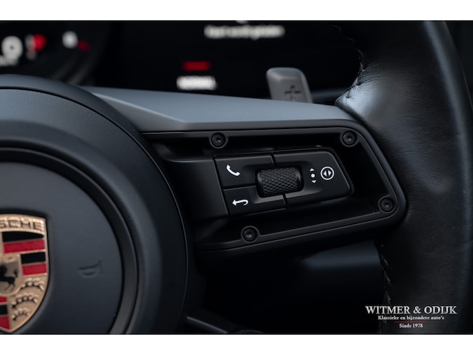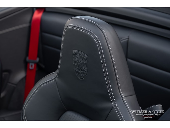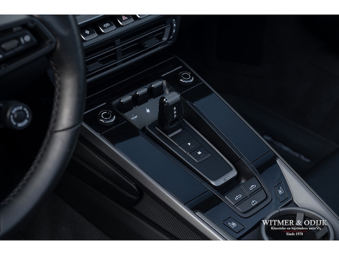 Het hier aangeboden exemplaar werd in 2019 nieuw geleverd door een Nederlandse Porsche dealer. Afkomstig van de tweede eigenaar die de auto perfect verzorgde en alleen de dealer het onderhoud liet uitvoeren. Uiteraard altijd schadevrij gebleven, optisch in nieuwstaat en ook het interieur heeft geen zichtbare gebruikssporen. De optielijst werd rijk voorzien van kruisjes... zo zijn er o.a. aanwezig automatische dual zone cliamt control, regelbare stoelverwarming, meervoudig elektrisch verstelbare stoelen met geheugen, Sport Chrono pakket (met fraai in rood uitgevoerde wijzerplaat), schakelbare sportuitlaat, Porsche Communication Management met navigatie en Carplay, achteruitrijcamera, rondom Parc Distance Control, cruise control, LED verlichting, elektrisch opklapbaar windscherm, Bose soundsystem met subwoofer, multifunctioneel en verstelbaar GT sportstuur, een volledig in leer uitgevoerd interieur, prachtige lichtmetalen velgen 21 en 22 inch, etc. De carrosserie, het cabriodak, de velgen en bumpers, alles is optische in bijzonder fraaie nieuwstaat. Rijklaar in onze showroom, maak a.u.b. even aan afspraak als u deze 992 Carrera 4S wilt bezichtigen.