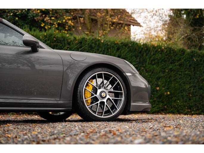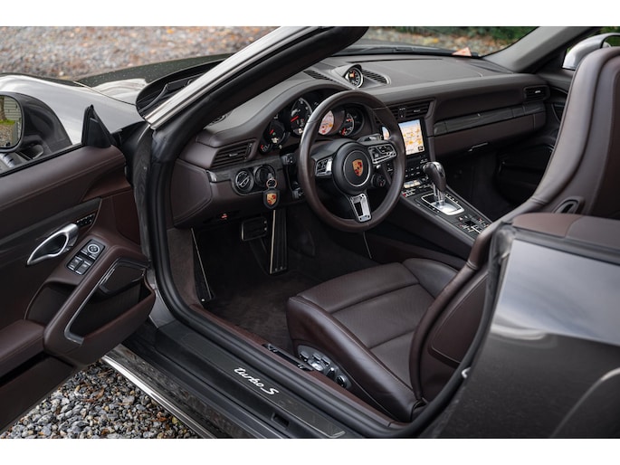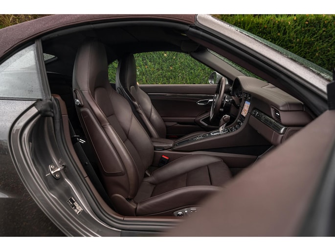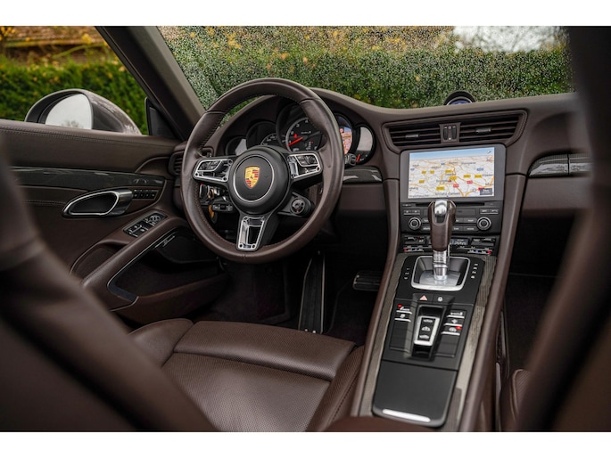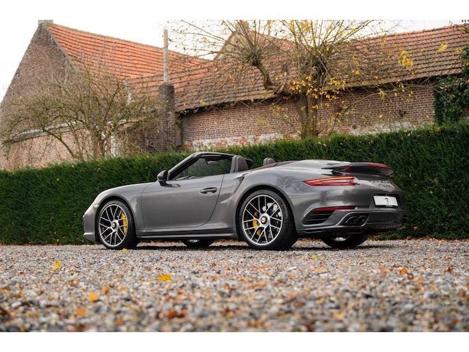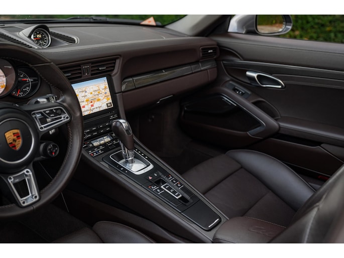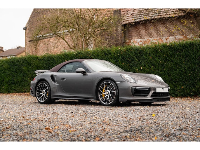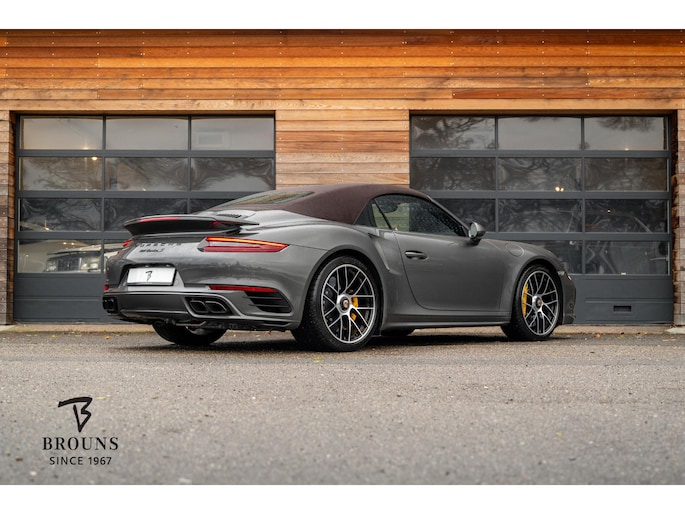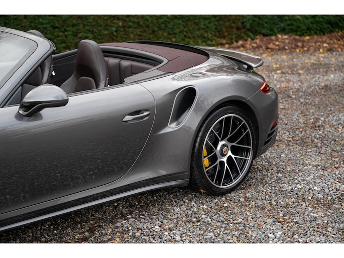 Modeljaar 2018 Porsche 991.2 Turbo S Cabriolet in bijzondere kleurencombinatie en vele opties uit het Porsche Exclusive Manufaktur programma.