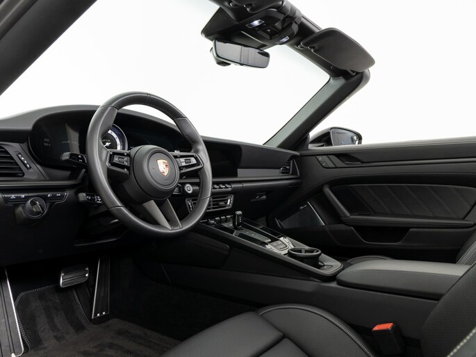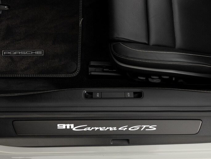 Deze Porsche 911 Carrera 4 GTS Cabriolet in de kleur Krijt heeft slechts 16.509 kilometers gereden. De Porsche onderscheidt zich onder andere door unieke opties, zoals; Dorpelbekleding binnenzijde in leder, Lederpakket 930, Porsche Dynamic Chassis Control (PDCC) en het SportDesign Pakket zwart hoogglans. Uiteraard is dit exemplaar nog verder te verfraaien door hoogwaardige accessoires van Porsche Tequipement.