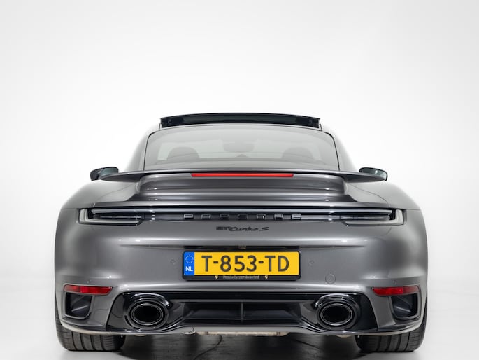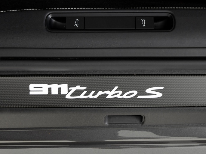 Deze Porsche 911 Turbo S in de kleur Agaatgrijs metallic heeft slechts 22.385 kilometers gereden. De Porsche onderscheidt zich onder andere door unieke opties, zoals; Dashboard en portierbekleding leder, Dorpelbekleding binnenzijde in leder, Interieurpakket met decoratieve stiksels in afwijkende kleur en Sportstoel Plus rugleuningen leder met decoratieve inleg leder. Uiteraard is dit exemplaar nog verder te verfraaien door hoogwaardige accessoires van Porsche Tequipement.