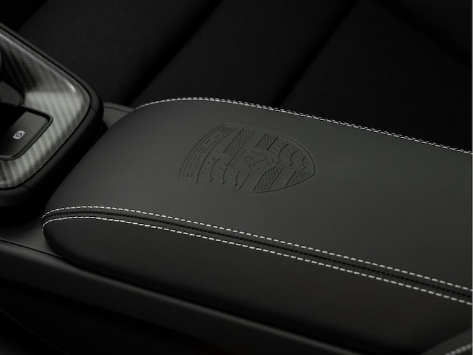 - Porsche Crest in reliëf op armsteun middenconsole (6E2)