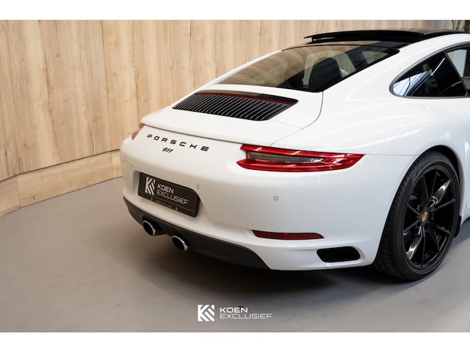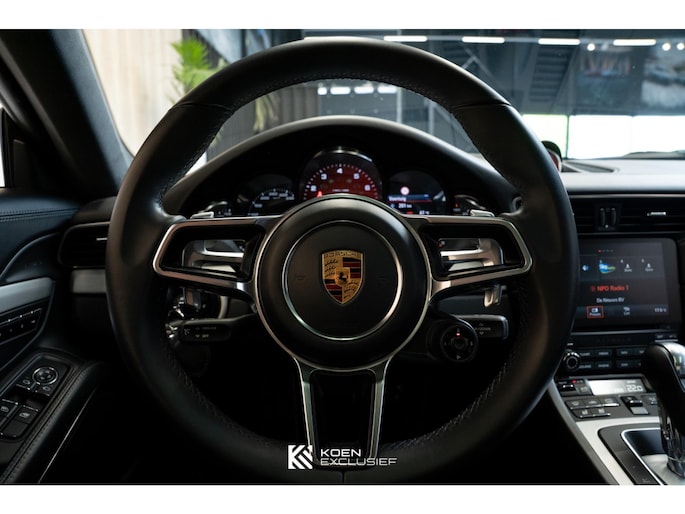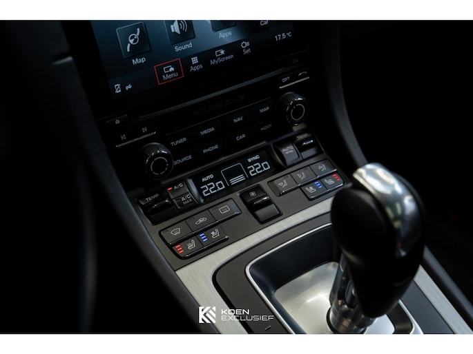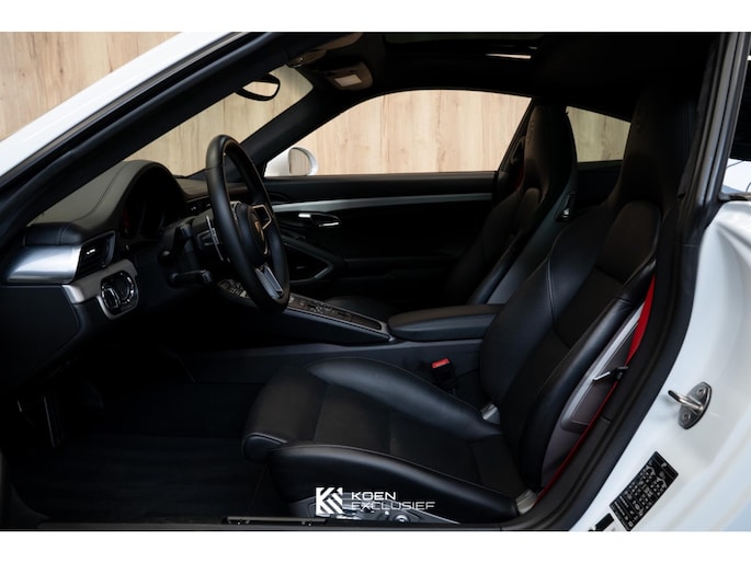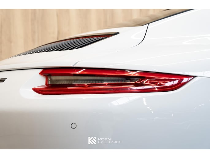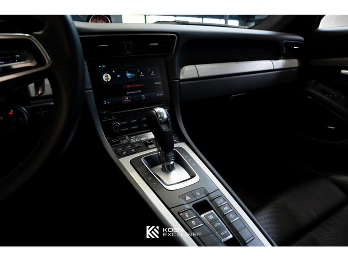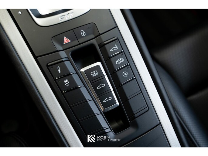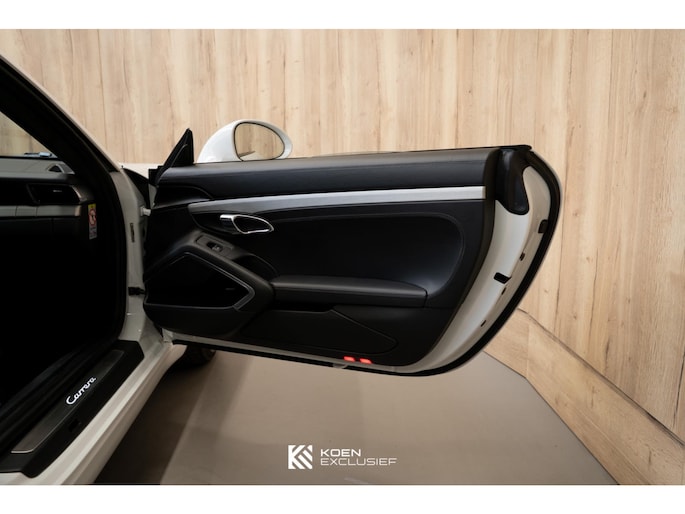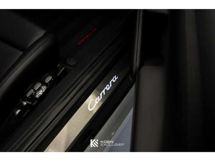 Verder is de auto voorzien van het sportuitlaatsysteem, PDK, zwart hoogglans 20 inch Carrera S wielen, cruise control, SportDesign spiegels in exterieurkleur gespoten, adaptieve sportstoelen Plus (18-voudig verstelbaar, elektrisch) met Memory Pakketmet, stoelverwarming en stoelventilatie, voorruit met grijze band, bagage net bij voetruimte passagier, Bi-xenonkoplampen incl. Porsche Dynamic Light System (PDLS), Licht-Design Pakket, indicatie maximale snelheid, ParkAssistent voor en achter inclusief camera, Elektrisch schuif-kanteldak (glas), stuurbekrachtiging Plus, BOSE, interieurpakket sierlijsten aluminium i.c.m. leder interieur, zelfdimmende binnen-/buitenspiegels met geïntegreerde regensensor, Sport Chrono pakket, digitale radio, SportDesign spiegel onderzijde hoogglans zwart gespoten, privacy beglazing, Porsche embleem op hoofdsteunen, dynamische motorsteunen, automatisch dimmende binnenspiegel, Porsche Active Suspension Management (PASM), wegrijbeveiliging en diefstalbeveiliging, hemelbekleding in alcantara afdekplaat middenconsole geborsteld aluminium en CarPlay.