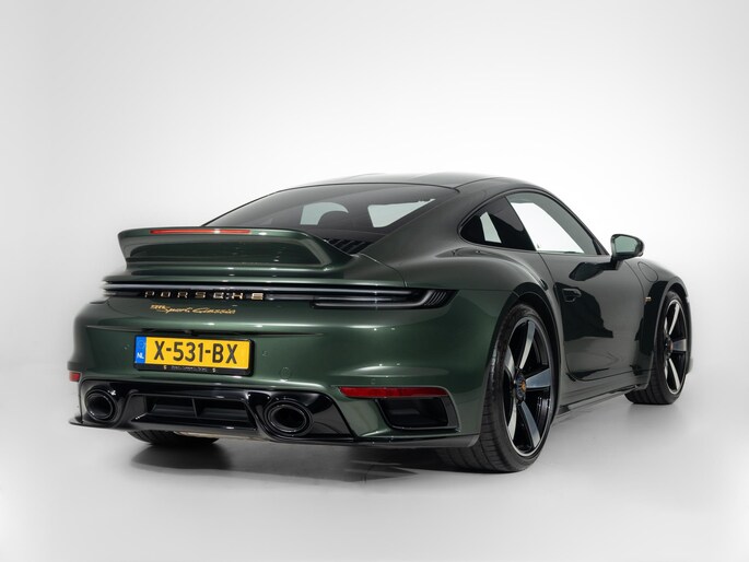 De Sport Classic is gebaseerd op de 911 Turbo, maar onderscheidt zich door zijn achterwielaandrijving en handgeschakelde zevenversnellingsbak—een unicum voor deze generatie. De 3,7-liter twin-turbo zescilinder boxermotor levert 550 pk en 600 Nm koppel, waarmee het de krachtigste handgeschakelde 911 van dit moment is.