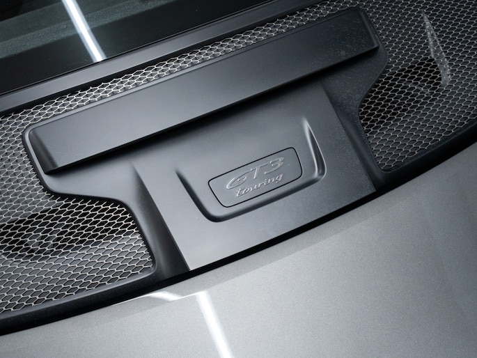 Automatisch uitschuivende achterspoiler en uniek luchtinlaatrooster met 'GT3 touring' logo