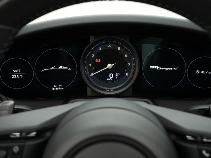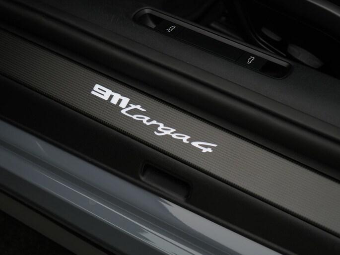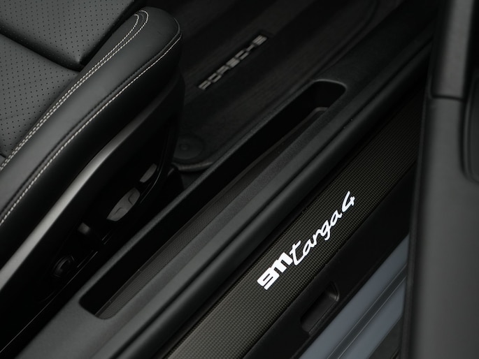 Deze Targa 4 is smaakvol samengesteld met het SportDesign pakket in hoogglans zwart, zwarte Targa-beugel, zwarte modelaanduiding en 20/21-inch Carrera Classic wielen. Dankzij Sport Chrono, sportuitlaatsysteem met zwarte eindstukken, liftsysteem vooras en Stuurbekrachtiging Plus combineert hij comfort met overtuigende prestaties. Het interieur is luxe afgewerkt met sportstoelen met memory, carbon interieurpakket, verwarmd GT-sportstuurwiel en BOSE® Surround Sound.