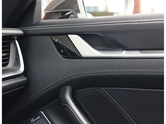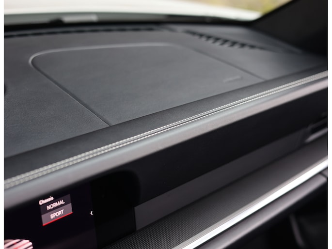 In het interieur vinden we zwart lederen adaptieve sportstoelen, 18-voudig verstelbaar en voorzien van verwarming en ventilatie. Daarnaast zijn de gordels en stiksels uitgevoerd in Krijt, perfect matching met het exterieur. Op het met leder beklede dashboard vinden we het bekende Sport Chrono klokje en carbon interieurlijsten.