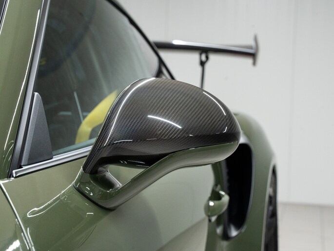 Deze origineel in Luxemburg geleverde 911 GT3 RS is gespoten in het kleur naar keuze Nato Olive, de GT3 RS is volledig dealeronderhouden en heeft op 09-2024 bij 9726km nog onderhoud gehad.