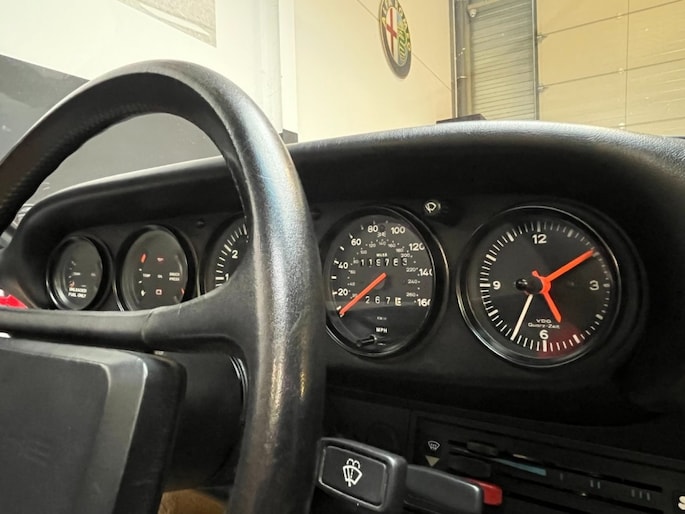 Dit betreft een matching numbers 3.2 liter luchtgekoelde zescilinder met 119.600 km. De motor loopt uitzonderlijk sterk en soepel, precies zoals een goed onderhouden Carrera hoort te lopen. Olie¬druk is correct, bedrijfstemperatuur stabiel en de auto voelt constructief strak aan op de weg.