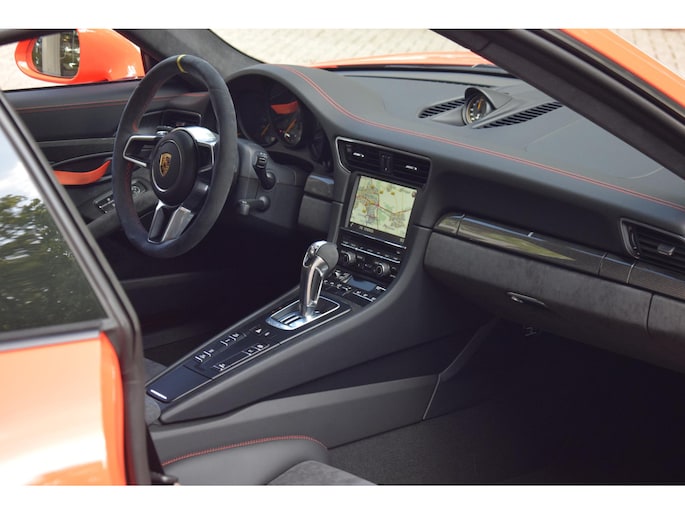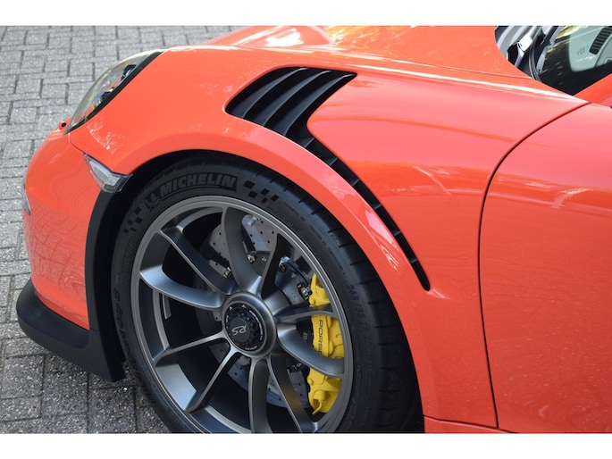 Deze Porsche 991 GT3 RS in de kleur "Lava Orange" uit 2015 met slechts 1995km! Betreft een eerste eigenaar auto, origineel NL geleverd, is een indrukwekkende sportauto die de geest van Porsche's motorsporttraditie belichaamt. Deze auto is gebaseerd op de al krachtige Porsche 911 GT3, maar Porsche heeft deze variant genomen en verfijnd om een nog krachtigere, lichtere en meer circuitgerichte versie te creëren.