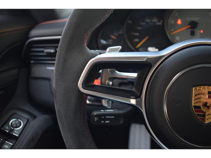 Het interieur van de 991 GT3 RS is ook op maat gemaakt voor de bestuurder. Deze auto beschikt over de zeer gewilde 918 Spyder kuipstoelen. Het minimalistische ontwerp en de sportieve accenten, zoals rolkooi en een sportstuur, zorgen voor een intense rijervaring op het circuit.