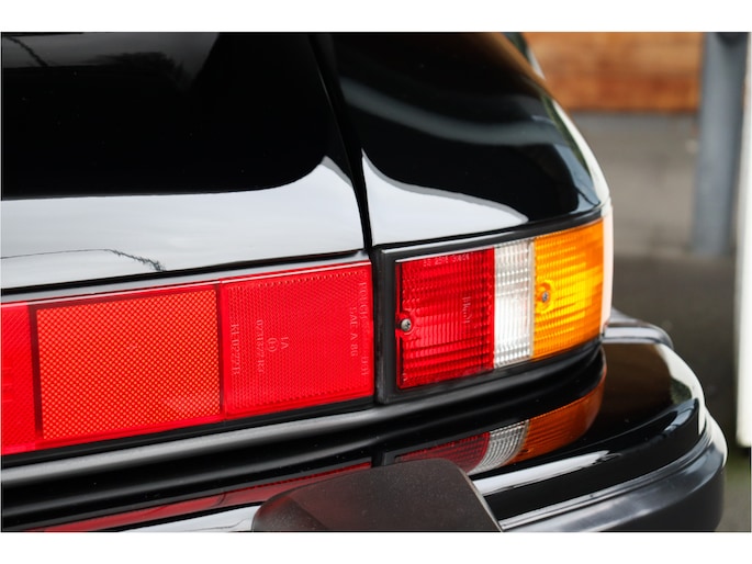 Der 930 ist außergewöhnlich gut konserviert. Die Karosserie weist keinerlei Rost auf – selbst an den bekannten Problemstellen nicht. Auch der Lack präsentiert sich in neuwertigem Zustand. Ebenso verraten weder die Gummidichtungen noch die Kunststoffteile ihr Alter. Die Rückleuchten zeigen keine typischen Spannungsrisse (Craquelé), und selbst die Nebelscheinwerfer sowie die Blinker befinden sich in neuwertigem Zustand. Das linke Scheinwerferglas weist einen kleinen Steinschlag auf, ebenso die Frontscheibe.