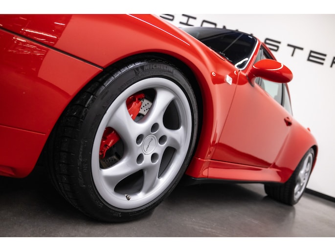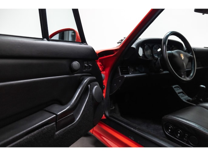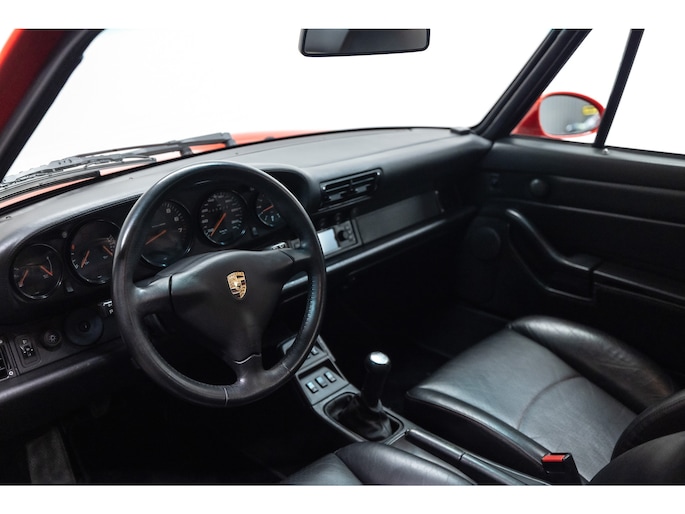 Zeldzame Porsche 993 Turbo uit 1996 te koop aangeboden. Deze Porsche 993 Turbo heeft slechts 95.479 kilometer op de teller! Het rood kleurig lakwerk verkeert in een schitterende staat. Het origineel zwart lederen interieur beschikt over de unieke Turbo Cup zetels. De Porsche 993 Turbo is met haar historie geheel kloppend van A tot Z en is afkomstig van de Porsche dealer!
