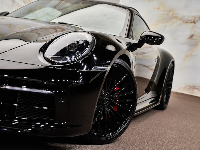 Het exterieur wordt versterkt door het SportDesign Pakket (2D1) en de SportDesign side skirts (VR4), wat de 911 een extra krachtige en lage uitstraling geeft. De 20/21-inch RS Spyder Design wielen (46J) vullen de wielkasten perfect. Details zoals buitenspiegels gespoten (6FU), geen modelaanduiding (0NA) en het PORSCHE logo in zwart (KQ2) zorgen voor een strakke, ingetogen look.