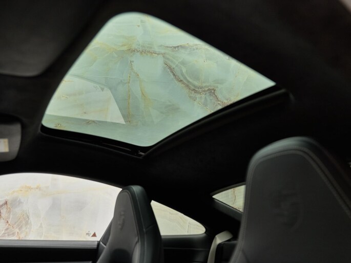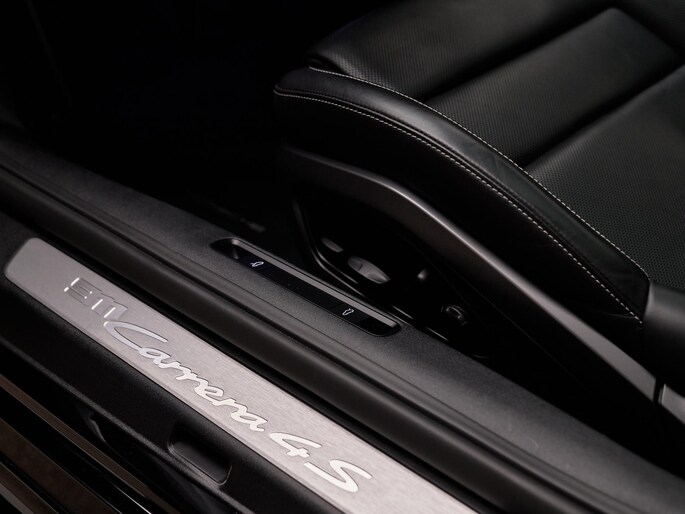 Binnenin geniet u van hoogwaardig comfort met elektrisch verstelbare sportstoelen (Q2J), stoelverwarming (4A3) én stoelventilatie vóór (4D3). De sfeer wordt versterkt door de alcantara hemelbekleding (6NN), het Licht Design Pakket (QQ1) en verfijnde details zoals Porsche emblemen op de hoofdsteunen (3J7) en krijtkleurige gordels (FI8).