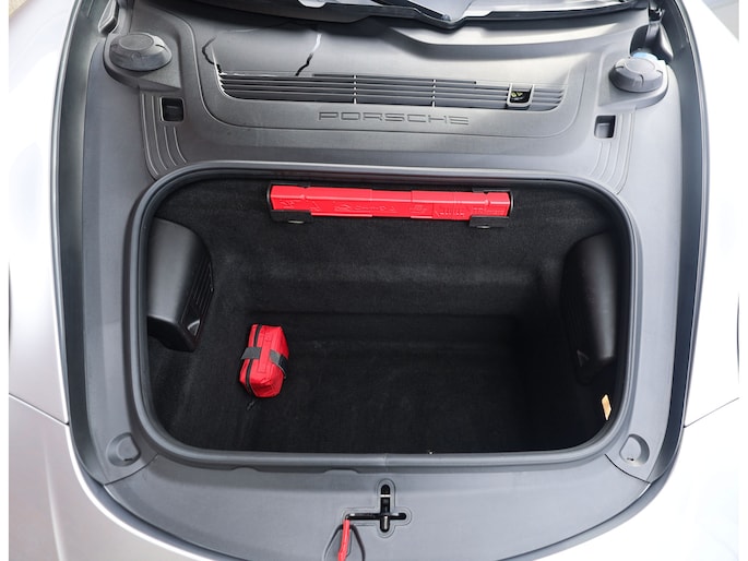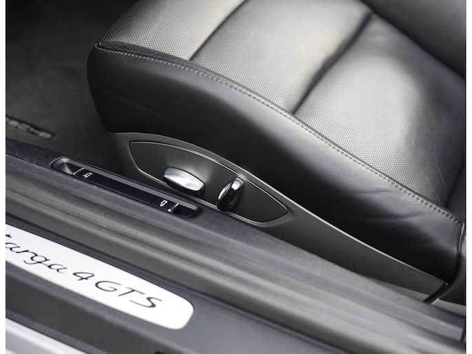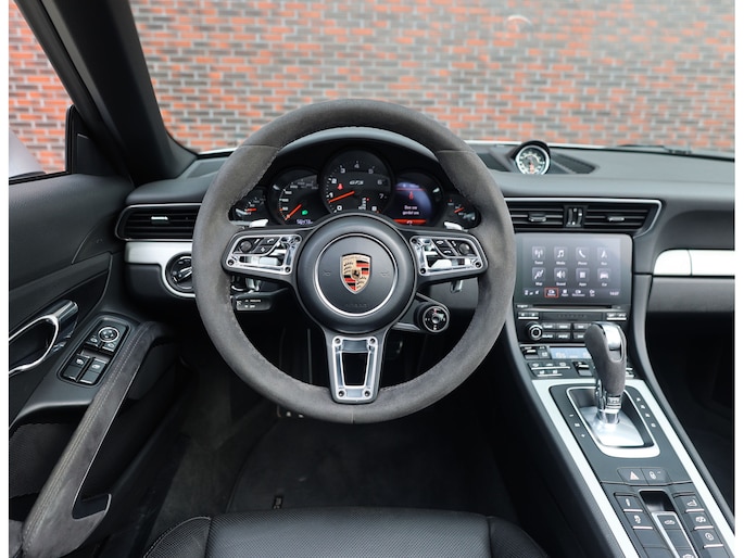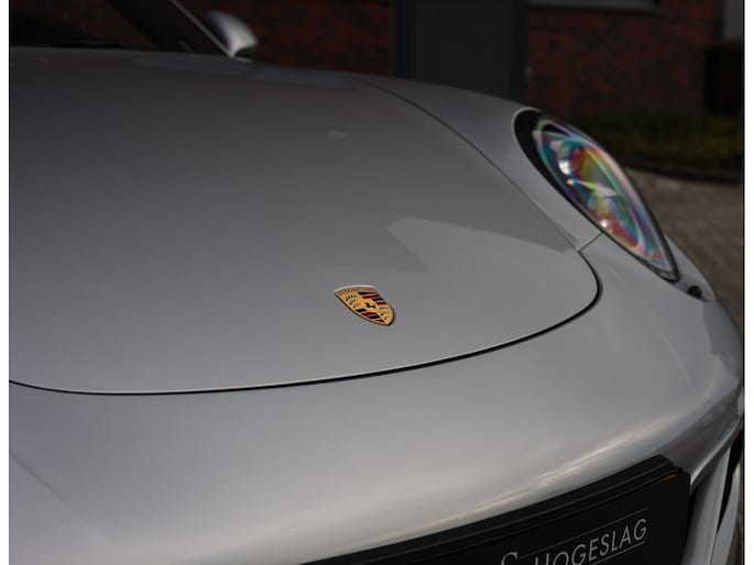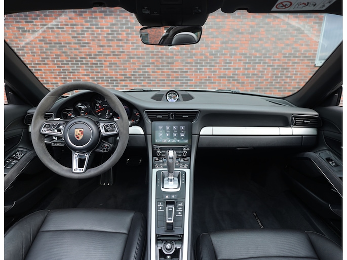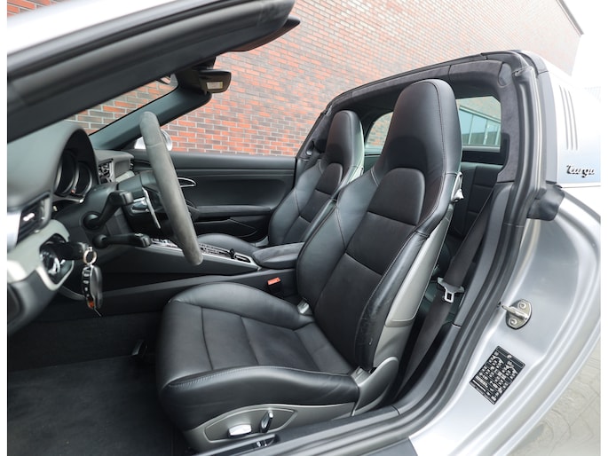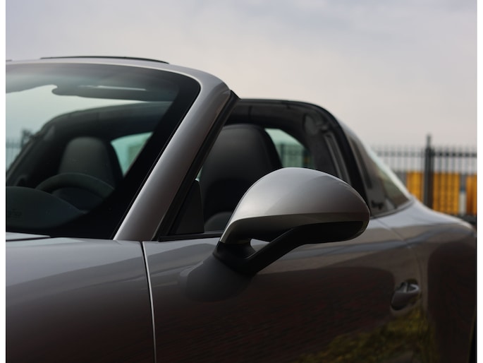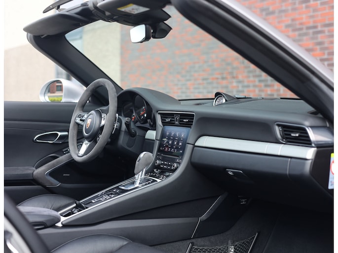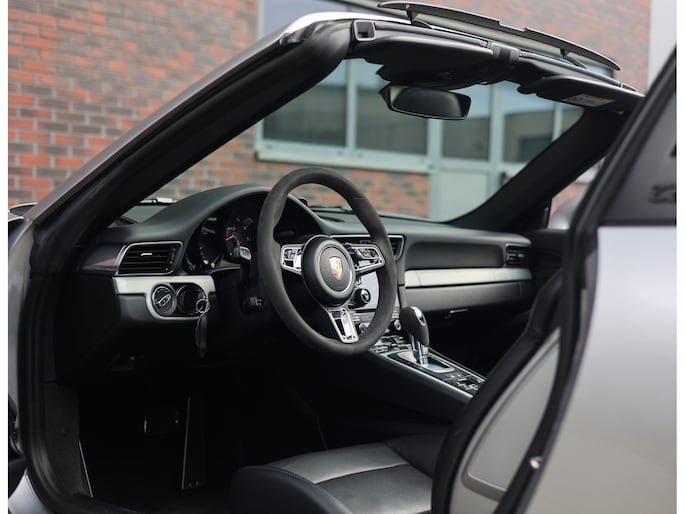 Het exterieur is uitgevoerd in GT Silver metallic, een tijdloze kleur die de iconische lijnen mooi accentueert. De zwarte velgen met daarachter rode remklauwen en het hoogglans zwarte SportDesign pakket bieden een prachtig contrast en benadrukken het sportieve karakter van de Porsche. Om het plaatje compleet te maken is de Targa-beugel uitgevoerd in zwart aluminium.
