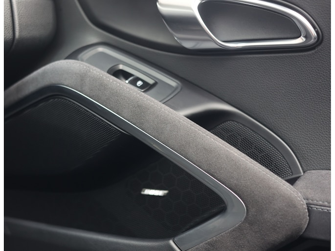 Het interieur is bekleed met zwart geperforeerd leder en Race-Tex. De sportstoelen zijn voorzien van verwarming én ventilatie zodat u ieder seizoen kunt genieten van de unieke Targa-beleving. Met Apple Carplay en het BOSE geluidssysteem luistert u naar uw favoriete muziek, al denken we dat u liever luistert naar de iconische zescilinder boxermotor!