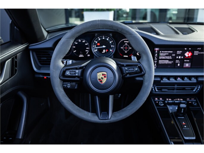 Het klassieke 911-design met zijn vloeiende lijnen en tijdloze silhouet krijgt extra allure door het cabriodak, dat binnen enkele seconden opent voor ultiem open-lucht-plezier — ideaal voor zomerse ritten of weekenduitstapjes. De uitgebalanceerde wegligging, sterke tractie en soepele respons maken elke kilometer bijzonder, zowel op bochtige wegen als op de snelweg.