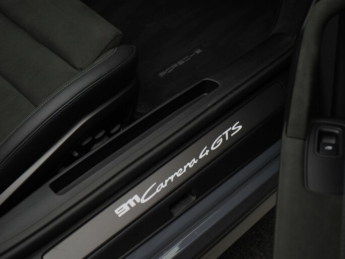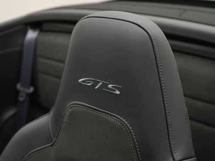 Deze GTS Cabriolet is voorzien van het SportDesign pakket in carbon, titanium sportuitlaatpijpen en het liftsysteem vooras voor maximale bruikbaarheid. Het interieur combineert comfort en performance met adaptieve sportstoelen Plus (18-voudig), carbon dorpellijsten, aluminium PDK-keuzehendel en een leisteengrijze Neo toerenteller als subtiel detail. Dankzij BOSE®, HD-Matrix LED-koplampen, Surround View, InnoDrive en Lane Change Assist is ook het comfortniveau uitzonderlijk hoog.
