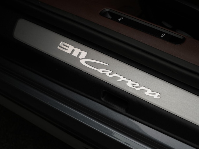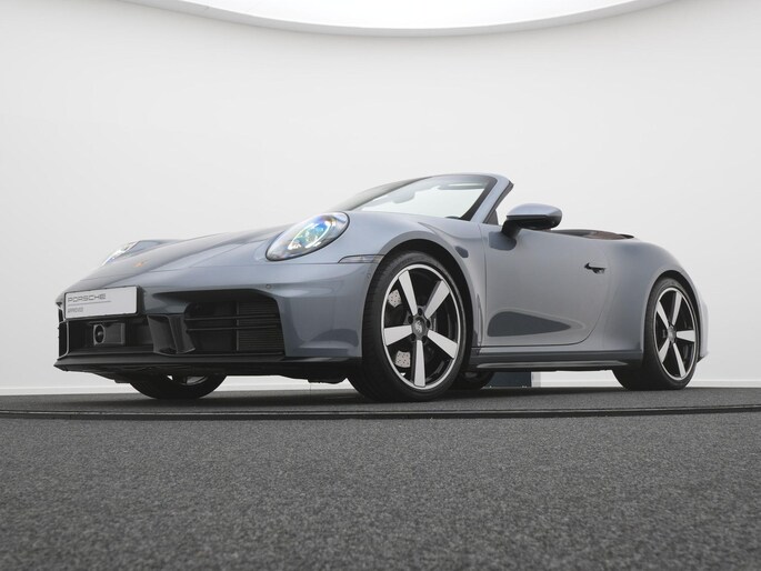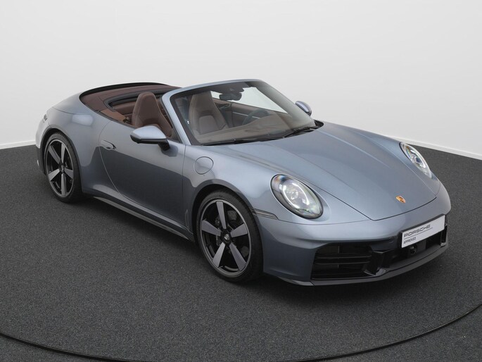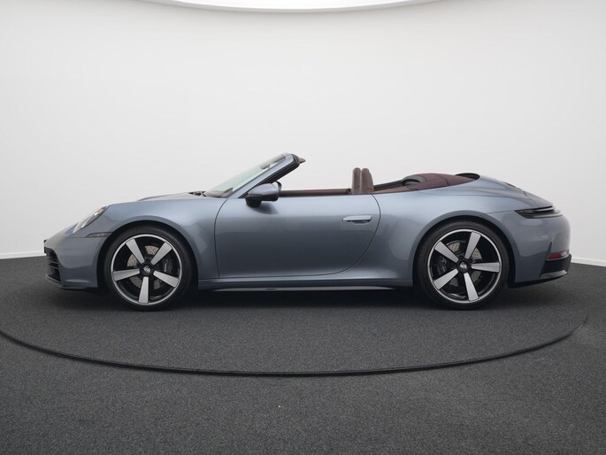 een bijzonder elegante Porsche 911 Carrera Cabriolet (992.2) uitgevoerd in Vanadium grijs, gecombineerd met een truffelbruin cabriodak en bijpassend interieur. Stijlvol, sportief en perfect in balans.