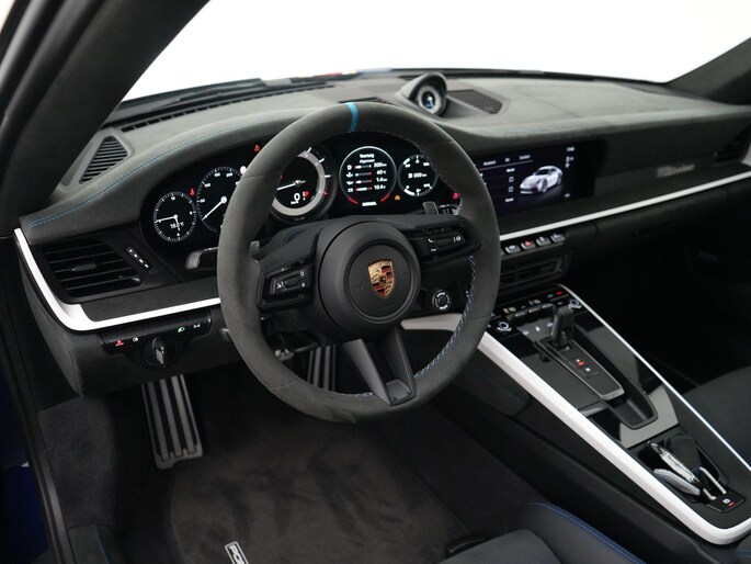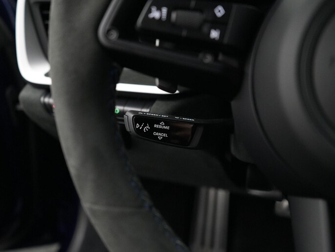 - Race-Tex interieur Rallye Design Package met uitgebreide items in leder en contrasterende stiksels in Haaiblauw