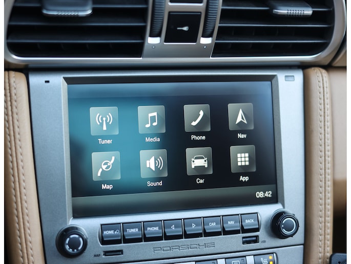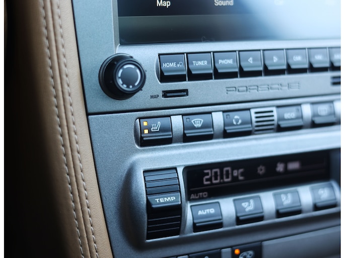 Het interieur is uitgevoerd in bruin en zwart volleder, wat zorgt voor een warme en luxe sfeer. De afwerking voelt solide en tijdloos, precies zoals u van Porsche mag verwachten. Met opties als stoelverwarming, climate control, BOSE en PCM is het comfort volledig op orde, zonder afbreuk te doen aan de klassieke cockpitbeleving. Daarnaast is dit exemplaar voorzien van een gemoderniseerd infotainmentsysteem, origineel van Porsche. Hiermee geniet u van Apple Carplay en Android Auto, hypermodern zonder afbreuk te doen aan de klassieke stijl.
