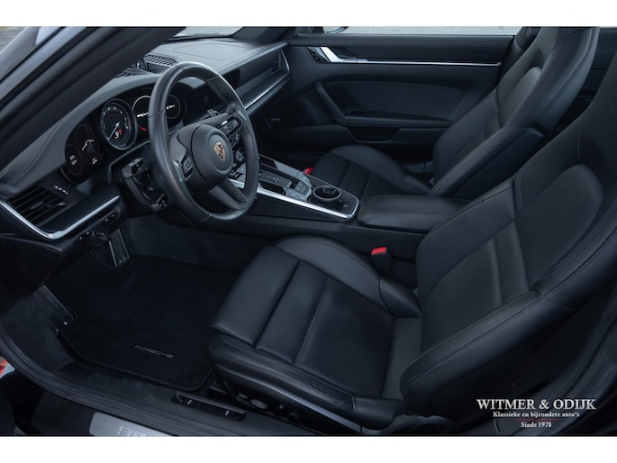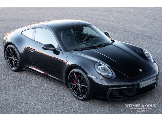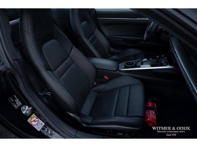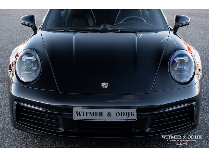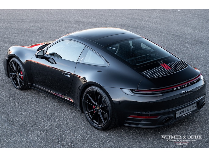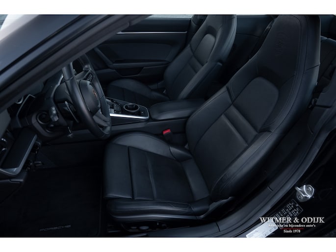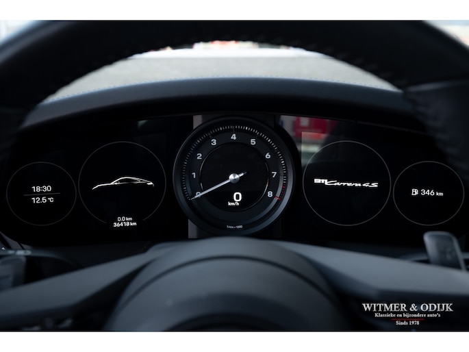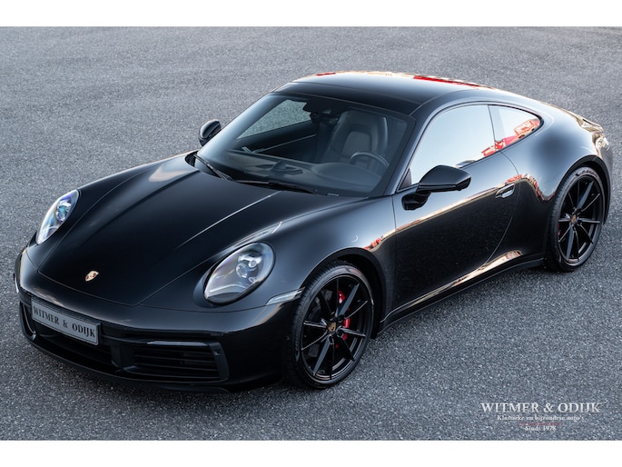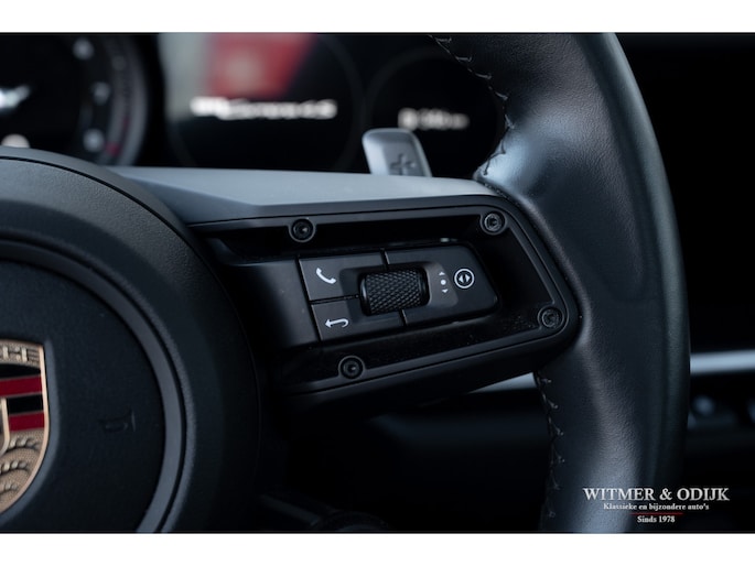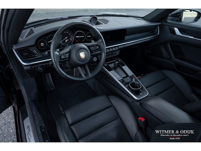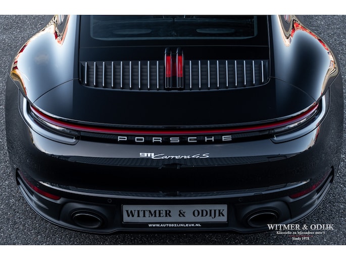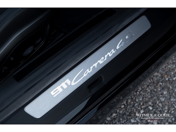 Nieuw in de collectie deze spectaculair fraaie Porsche 992 Carrera 4S. Samengesteld door de eerste eigenaar, een Porsche liefhebber met kennis van zaken waardoor de auto over de juiste opties beschikt. Uitgevoerd in stijlvol 'black-on-black', een zwarte carrosserie met dito accenten en een volledig in leer met dubbele zwarte stiksels uitgevoerd interieur. De lakzwarte interieurdelen maken het geheel optisch perfect af. Op de indrukwekkende optielijst staan o.a. de volgende belangrijke zaken; Sport Chrono Pakket, Automatische Climat Control, stoelverwarming en stoelkoeling, schakelbare sportuitlaat, elektronisch instelbaar sport onderstel, Porsche Dynamic Light System (led verlichting), Porsche Communication Management met navigatie, Bose luidsprekersysteem met subwoofer, Parc Distance Control voor en achter plus camera, Adaptieve Cruise Control, elektrisch bedienbaar panorama schuifdak, meesturende achteras, Apple Carplay, multifunctioneel en verstelbaar sportstuur, etc. Voor wie een min of meer nieuwe Carrera 4S wil rijden een uitgelezen kans. Afkomstig van de eerste eigenaar die de auto bij Porsche Rotterdam bestelde en daar ook liet onderhouden. Uiteraard is de gehele auto in volledige en originele nieuwstaat. De velgen zijn leverbaar in iedere gewenste kleur.