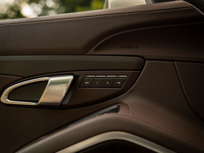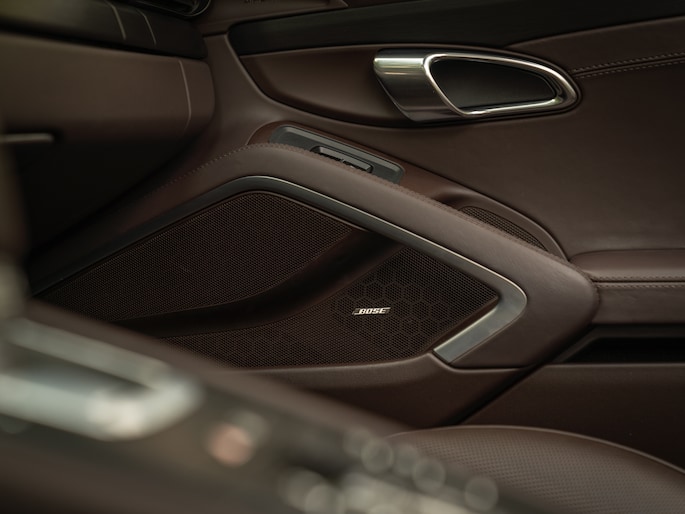 Vanwege de super chique kleurstelling van de kap, is de GTS Cabriolet in gesloten toestand al net zo’n eyecatcher als wanneer het dak eraf gaat. Dat de Espresso tint een 100% match vormt met de bekleding van het interieur, is uiteraard geen toeval. Porsche is helemaal los gegaan met het donkerbruine natuurleder: de Adaptieve Sportstoelen Plus, alsmede het GT Sportstuur, de stuurkolom, portieren, middenarmsteun en het dashboard is ermee uitgerust. Verder zijn Espresso van kleur: de tunnelconsole, vloer en A-stijlen. “Wauw” is een woord dat hier op z’n zachtst gezegd wel op z’n plaats is.