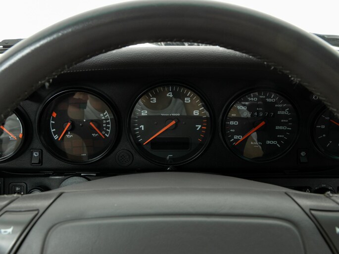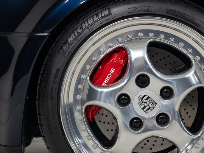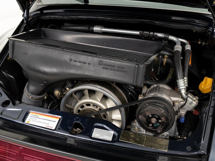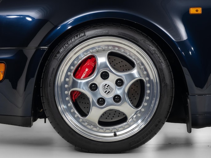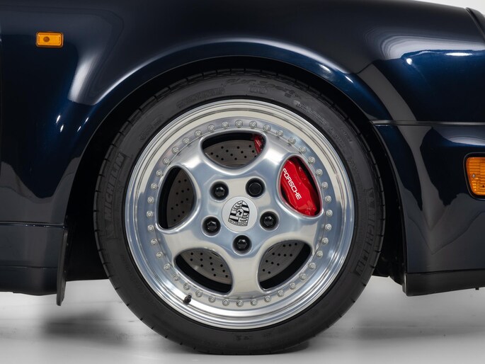 De Porsche 964 3.3 Turbo is een icoon binnen de luchtgekoelde 911-generatie en staat bekend om zijn pure rijbeleving en tijdloze design. De door ons aangeboden auto is uitgevoerd in Nachtblauw metallic met een stijlvol leder interieur in Classic Grey.