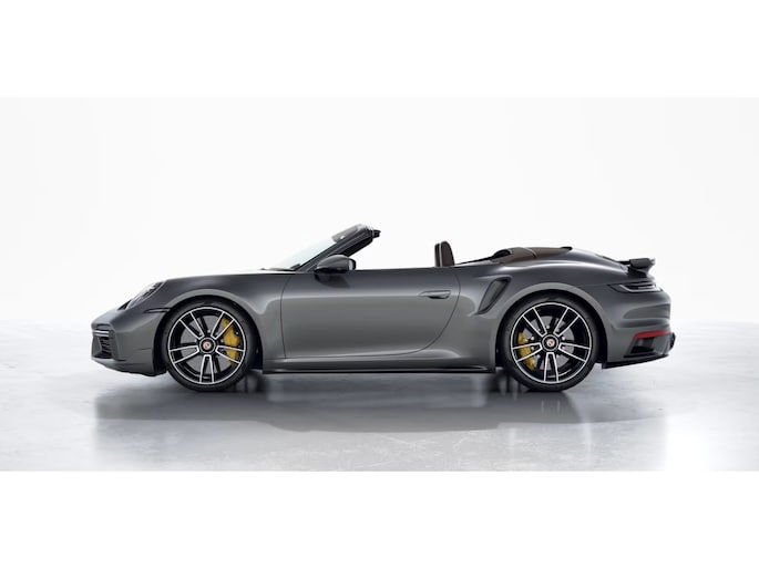 Deze Porsche 911 Turbo S Cabriolet in de kleur Agaatgrijs metallic heeft slechts 9.231 kilometers gereden. De Porsche onderscheidt zich onder andere door unieke opties, zoals; SportDesign Pakket 911 Turbo hoogglans zwart gespoten, Sportstoel Plus achterzijde in leder met inleg carbon, Interieurpakket stiksels in afwijkende kleur en Club leder truffelbruin. Uiteraard is dit exemplaar nog verder te verfraaien door hoogwaardige accessoires van Porsche Tequipement.