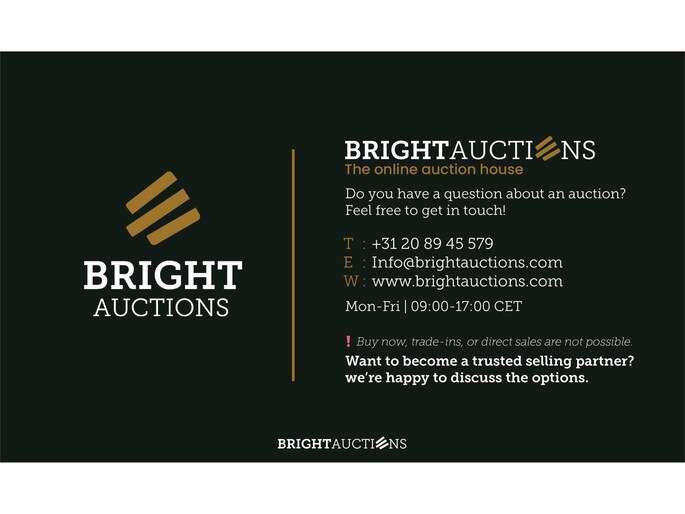 This vehicle is auctioned via Bright Auctions. Bidding starts from €1,000. Exact auction start and end dates, as well as additional information, can be found on our website. All bids are only valid via www.bright-auctions.com.
