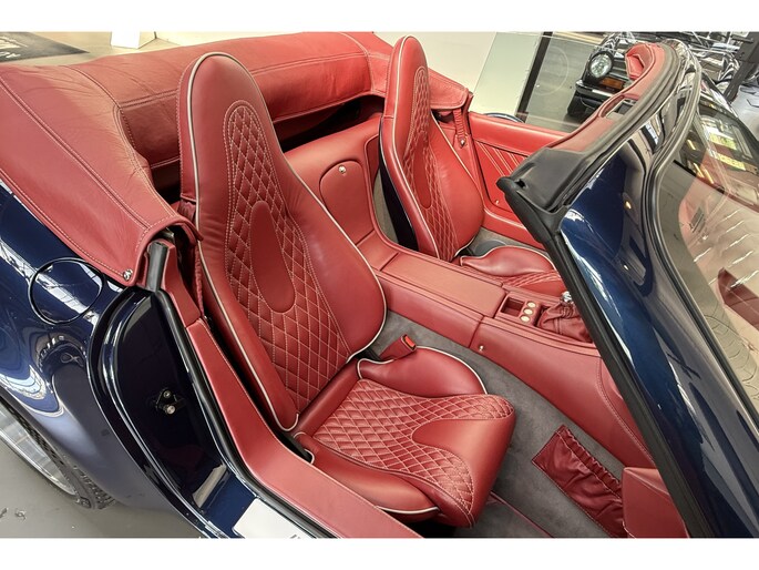 Zijn uitstraling is betoverend: de diep donkerblauwe carrosserie vormt een schitterend contrast met het handgemaakte rode interieur, een kleurencombinatie die de exclusiviteit extra benadrukt. Als subtiele finishing touch zijn de harten van de wielen meegespoten in carrosseriekleur, wat de uitstraling helemaal afmaakt.