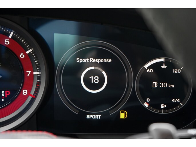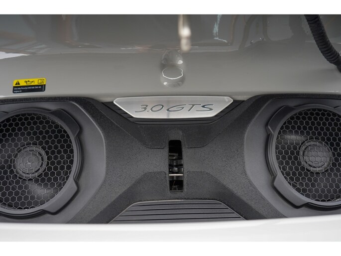 De rode Karmijnrode accenten springen direct in het oog: van de contraststiksels en de GTS-logo's in de hoofdsteunen tot aan de wijzerplaten van de toerenteller en de Sport Chrono klok. Het sturen gebeurt met een Race-Tex sportstuurwiel voorzien van mat carbon inleg en stuurwielverwarming. Het interieur is verder afgewerkt met het Carbon mat pakket, instelbare sfeerverlichting en het hoogwaardige BOSE® Surround Sound System.