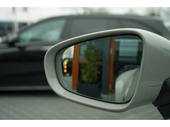 De carrosserie in Krijt vormt een schitterend geheel met het SportDesign Pakket in hoogglans zwart. De agressieve look wordt versterkt door de matzwarte GTS Centerlock velgen met centrale wielmoer. Aan de achterzijde vallen direct de Exclusive Design achterlichten op (de heldere variant zonder rode elementen), gecombineerd met het sportuitlaatsysteem met eindpijpen in hoogglans zwart. Het grote glazen panoramadak en de donkere privacybeglazing maken het exterieurbeeld compleet.