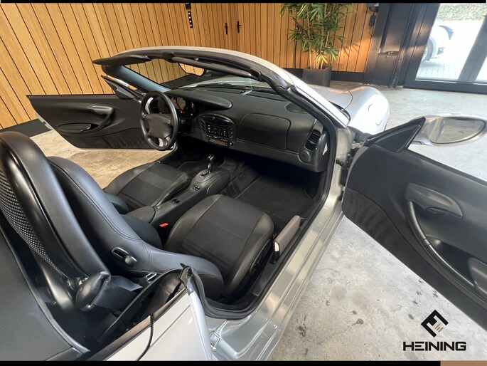 Je leest het vaak, Van oud vrouwtje geweest. In dit geval echt zo. Nieuw gekocht bij Porsche in Nederland afgeleverd op Belgisch kenteken en in 2005 weer meeverhuist naar Nederland. Nette auto altijd binnen gestaan en met 95.000 km!!! Nu net groot onderhoud en apk gehad, dus Rijklaar !!! Zodra de zon zich laat zien, kunt u heerlijk genieten achter het stuur van deze cabriolet. Kwaliteit, techniek, prestaties en rijcomfort. Geldt voor alle Duitse merken. Daar kan je blind van op aan. Hij heeft een benzinemotor en een automatische transmissie. Verder is de Porsche uitgerust met: metallic lak en windscherm.