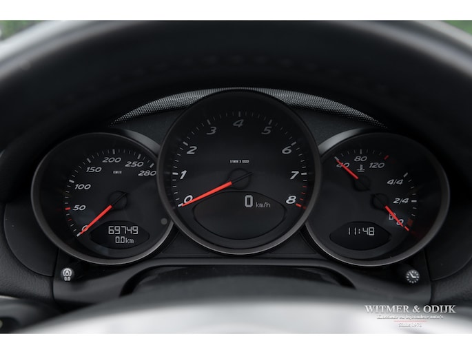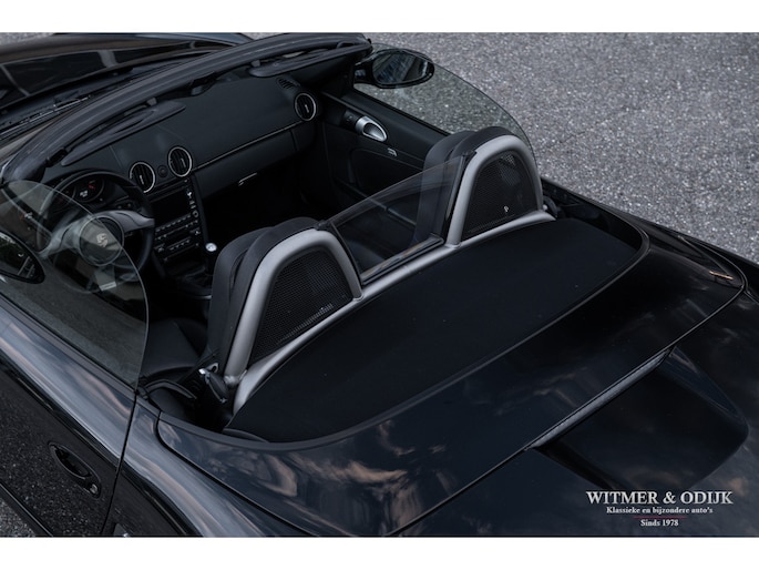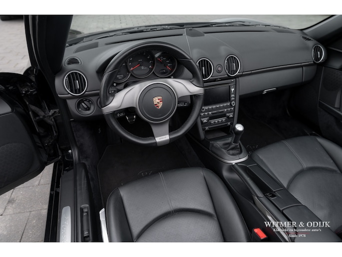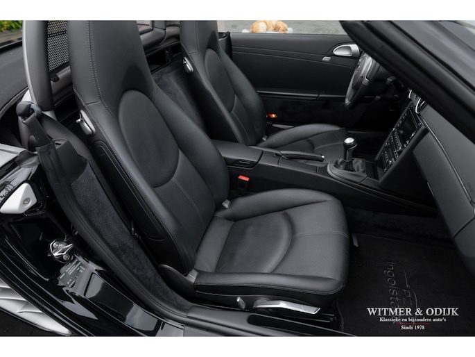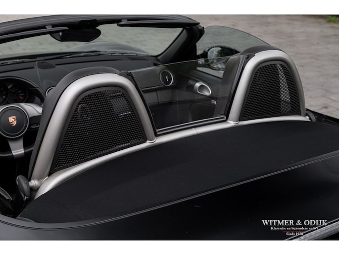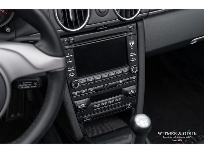In 2009 werd de tweede succesvolle generatie Porsche Boxster (987) wederom vernieuwd, niet zo zeer wat uiterlijk betreft maar technisch nogal drastisch. De motor werd op belangrijke punten verbeterd, gemodificeerd en voorzien van de modernste technieken die Porsche paraat had. Het onderstel en bijv. ook het entertainment systeem werden eveneens up-to-date gemaakt. Het ideaal te noemen midden-motorconcept werd nóg verder verbeterd. Nooit meer zorgen over de betrouwbaarheid die bij de eerdere series nog wel eens tot flinke garage facturen konden leiden. Zorgeloos en betaalbaar Porsche rijden. Tel daar het indrukwekkende motorgeluid uit de centraal geplaatste uitlaat bij op en kom tot de conclusie dat de funfactor van de Boxster een van de meest optimale in autoland is. De bouwkwaliteit en, met de komst van deze serie, betrouwbaarheid behoeven nauwelijks meer een vermelding. Kortom een absolute aanrader voor wie graag open rijdt, het verstand mee laat spreken en het haar een beetje in model wil houden.. Deze 2010 Boxster heeft o.a. automatische climat control, stoelverwarming, elektrische stoelverstelling, Porsche Stability Management, sportuitlaat, cruise control, windschot, verstelbaar sportstuur, Blutooth interface, bijzondere 19 inch lichtmetalen velgen, parc distance control, Porsche Communication Management met navigatie, xenon verlichting en meer. Deze Boxster is zeer strak en stijlvol uitgevoerd in Basalt Black Metallic gecombineerd met een eveneens zwarte cabrioletkap. De auto is volledig origineel en altijd schadevrij gebleven, er zijn geen zichtbare gebruikssporen waarneembaar. De cabrioletkap heeft geen lelijke vouw- of slijtplekken en is voorzien van een verwarmbare glazen achterruit. De uiterlijke staat is min of meer gelijk aan die van een nieuwe Boxster. Ook het interieur kent geen vermeldenswaardige sporen van gebruik, de kwalificatie 'liefhebbersauto' is ook hier duidelijk terug te zien. De instapkanten van de stoelen mooi, keurige Porsche matten op de vloer en schone goed afleesbare instrumenten en schakelaars. Opvallend is het fraaie drie-spaaks sportstuur wat met leer bekleed is. Deze 2010 Boxster is dealer onderhouden, altijd schadevrij gebleven en garage gestald. In alles is terug te zien dat het een echte hobby- of liefhebbersauto was. Alleen met mooi weer gebruikt. Zie de foto's van het smetteloze interieur bijvoorbeeld. Bij de auto zijn de originele instructie- en onderhoudsboekjes. Reservesleutel aanwezig. Wij leveren deze Porsche af inclusief nieuwe APK, garantie en onderhoudsbeurt. Zie onze website voor meer dan 100 foto's www.witmerodijk.nl of gebruik de volgende link; https://www.witmerodijk.nl/te-koop/porsche-boxster-'10-987-mk2-manual-69.700km/2495
