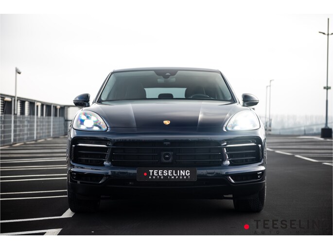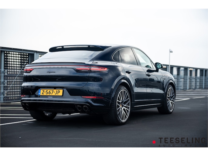 Zeer exclusieve en compleet uitgevoerde Porsche Cayenne Coupé E-Hybrid uit juli 2022 in de schitterende kleur Moonlight blauw.