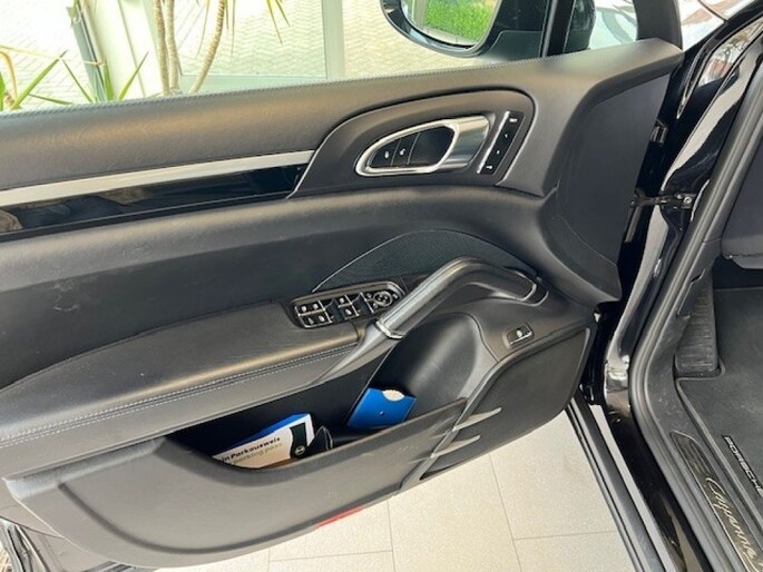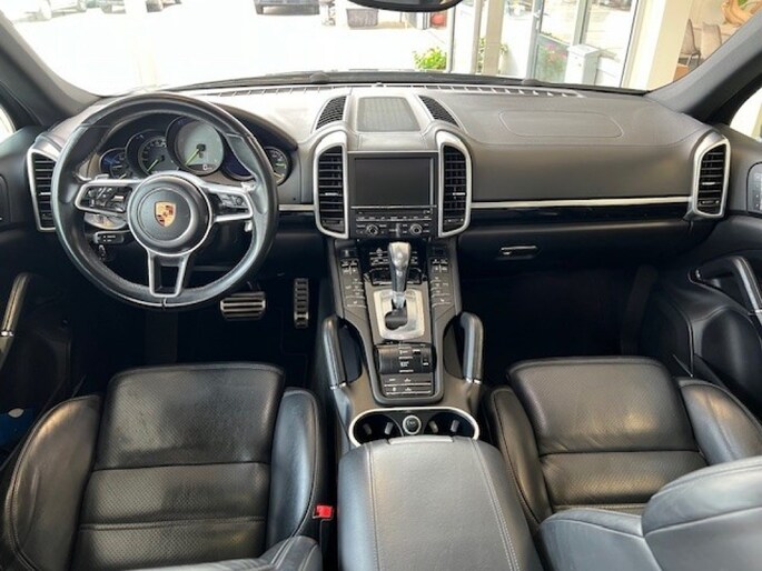 Deze zeer complete Porsche Cayenne 3.0 S E-Hybrid is van de eerste eigenaar en is altijd door Porsche onderhouden. Onderhoud houdhistorie is geheel aanwezig. Een zeer complete auto. Panorama dak, Lederen bekleding, 21'wielen, Navigatie systeem, Parkeersensoren voor en achter met camera, Radio met touchscreen, Luchtvering, Beide voorstoelen zijn elektrisch in 14 standen te verstellen, Zomer en winterbanden in nieuw staat, Panorama dak. met deze auto rijden wij zelf. Dus de km's kunnen iets afwijken.