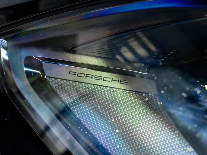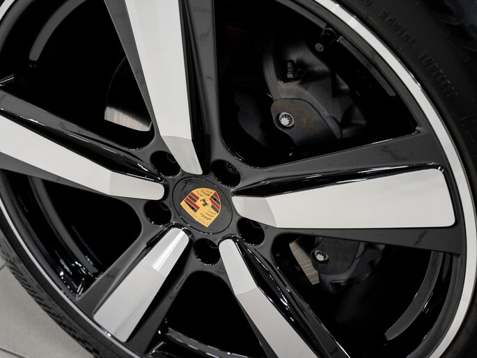 'PORSCHE' logo gespoten in zwart (hoogglans) en modelaanduiding gespoten in exterieurkleur