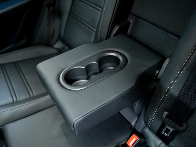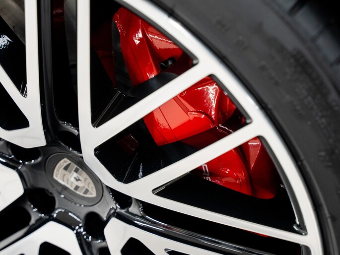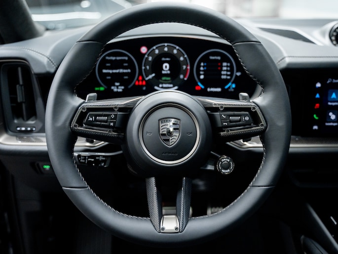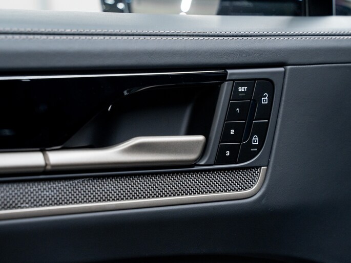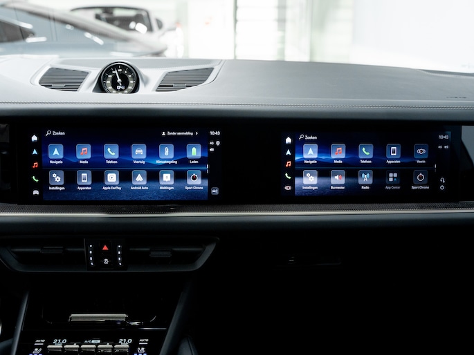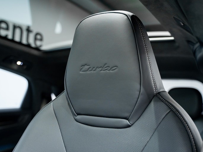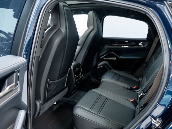 De luchtvering verlaagt de rijhoogte automatisch bij hoge snelheid. Het actieve rolstabilisatiesysteem en Porsche Torque Vectoring Plus houden de zware carrosserie strak in balans. Zelfs bij snelle bochten blijft het gevoel direct en beheerst.
