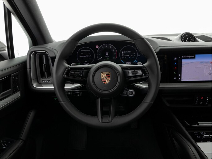 Deze Porsche Cayenne E-Hybrid in de kleur Krijt heeft slechts 26.000 kilometers gereden. De Porsche onderscheidt zich onder andere door unieke opties, zoals; Adaptieve sportstoelen voor (elektrisch 18-voudig), GT-sportstuur inclusief stuurwielverwarming, Head-Up Display en het SportDesign front. Uiteraard is dit exemplaar nog verder te verfraaien door hoogwaardige accessoires van Porsche Tequipement.