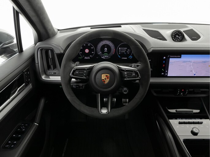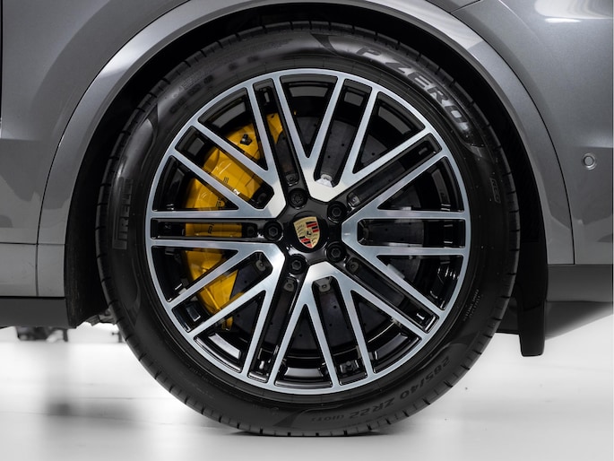 Deze Porsche Cayenne Turbo E-Hybrid in de kleur Kwartsietgrijs metallic heeft slechts 37.328 kilometers gereden. De Porsche onderscheidt zich onder andere door unieke opties, zoals; Achterasbesturing, Geluid- en warmtewerend privacyglas, Nachtzichtassistent en Porsche Ceramic Composite Brake (PCCB) met gele remklauwen. Uiteraard is dit exemplaar nog verder te verfraaien door hoogwaardige accessoires van Porsche Tequipement.